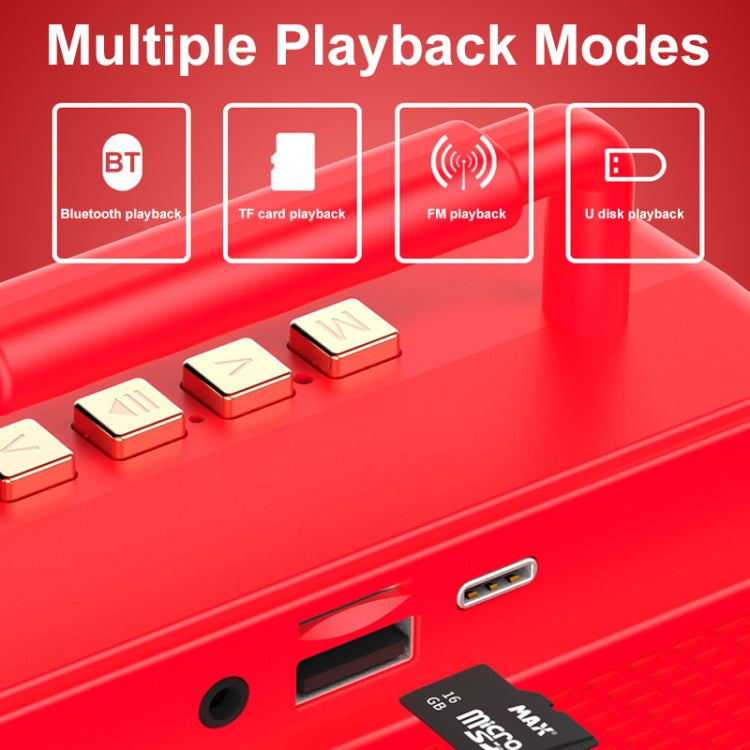 RYNX | BT21 Retro USB Flash Drive FM Radio Wireless Bluetooth Speaker, Color: Pink