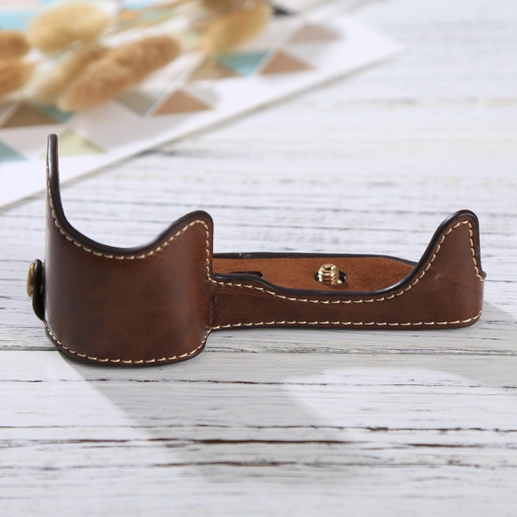 Rynx | 1/4 inch Thread PU Leather Camera Half Case Base for Sony Alpha 6100 / A6100 (Coffee)