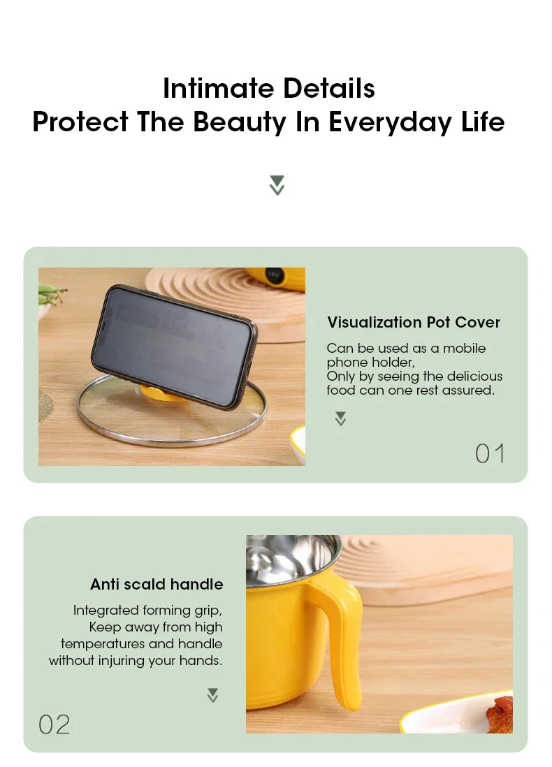 - Easy to Use: With just one simple heating program, this electric cooking pot is user-friendly and perfect for those who want to cook without complicated settings. Whether you're cooking noodles, rice, or a quick stew, it’s easy to set up and get cooking.