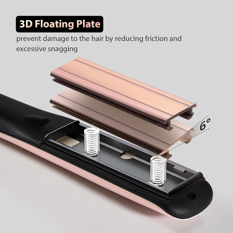 - Advanced 3D Floating Ceramic Plates for Smooth, Frizz-Free Results--Experience salon-quality styling with the Orynne hair straightener's 3D floating ceramic plates. These plates conform to the contours of your hair, minimizing snagging and breakage, while providing sleek, shiny results. The ceramic coating distributes heat evenly, reduces damage, and helps you achieve smooth, frizz-free hair every time.