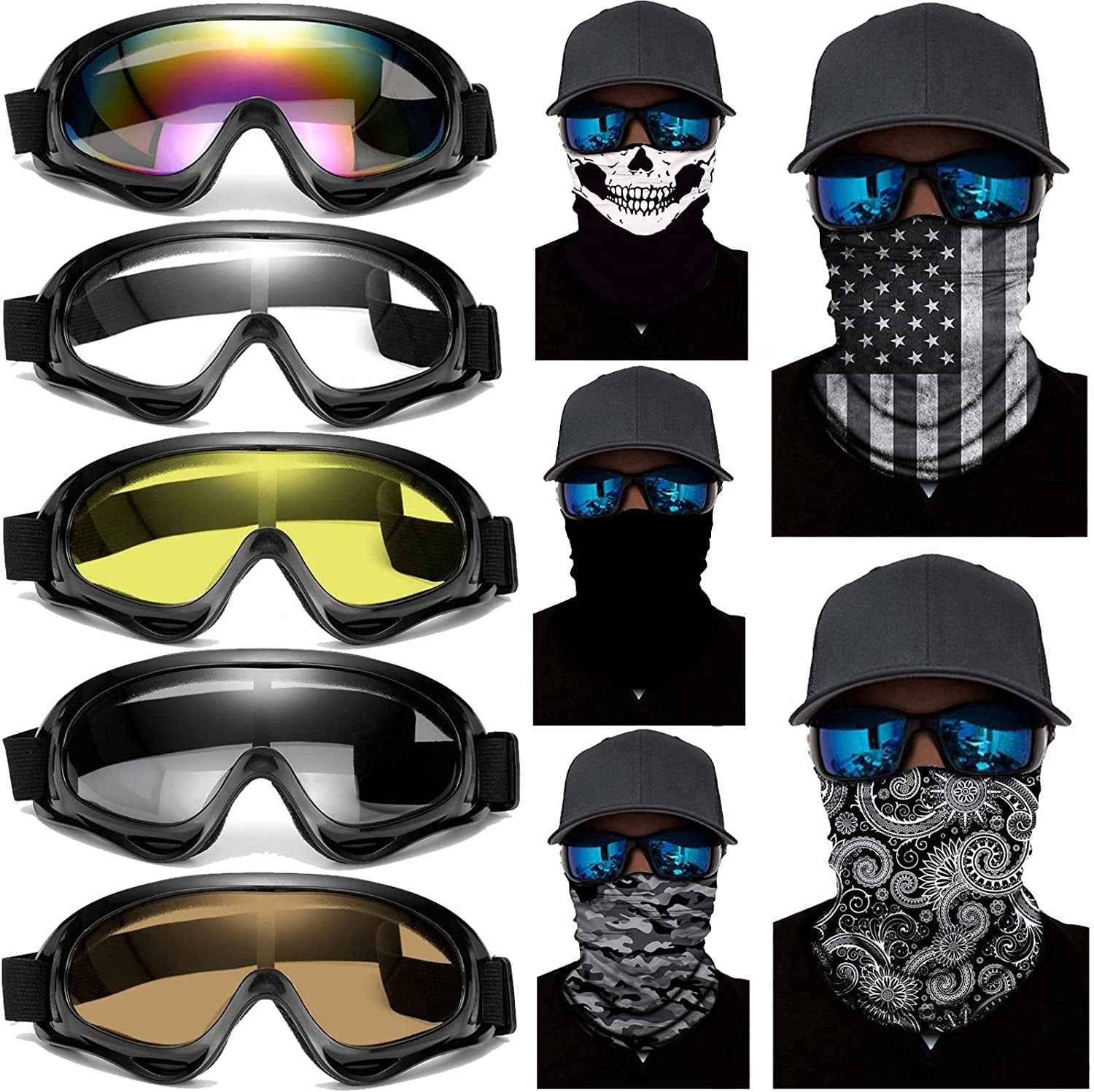 10 Pack Motorcycle Accessories, 5PCS Dirt Bike Ski Goggles Dust-Proof Windproof Safety Glasses and 5PCS Masks