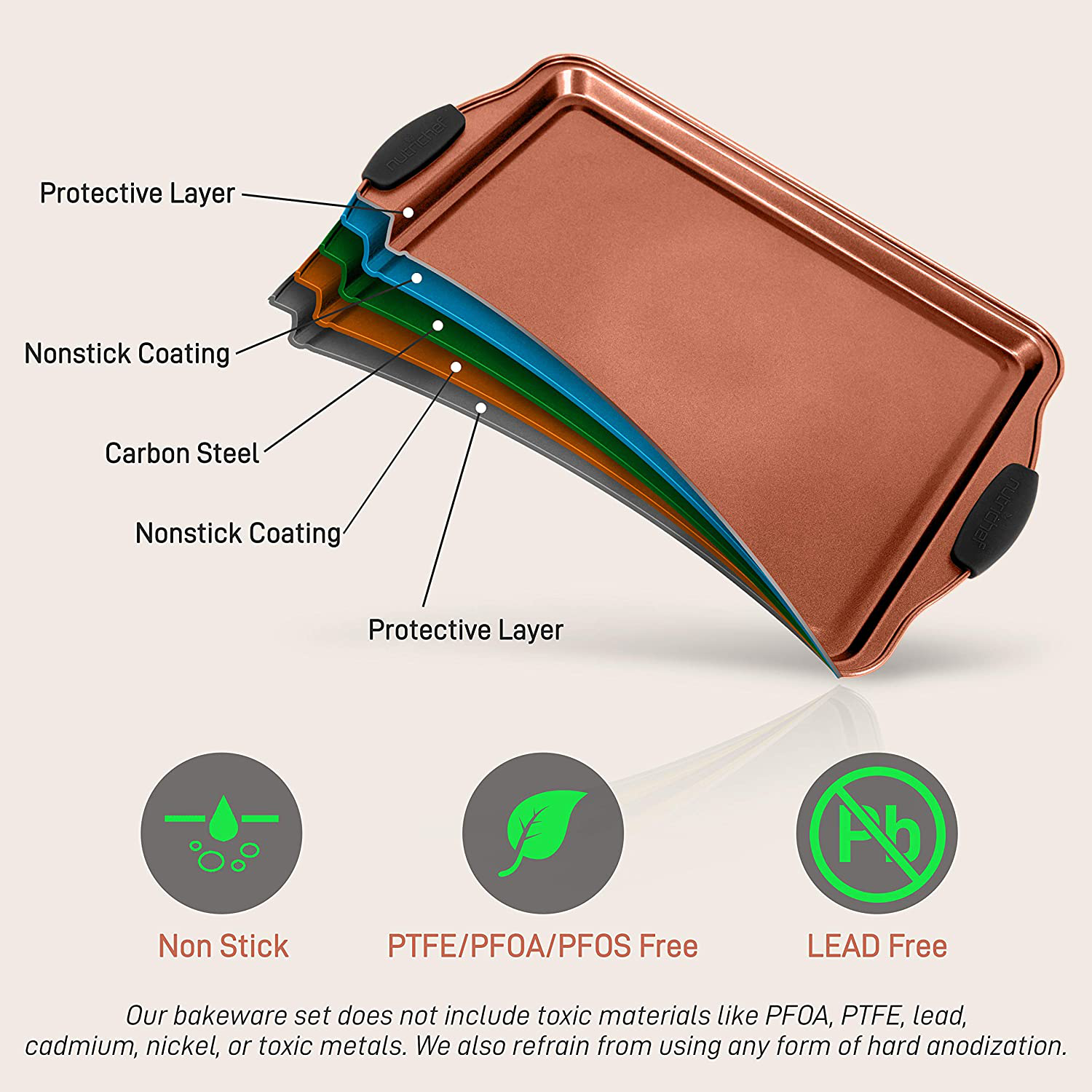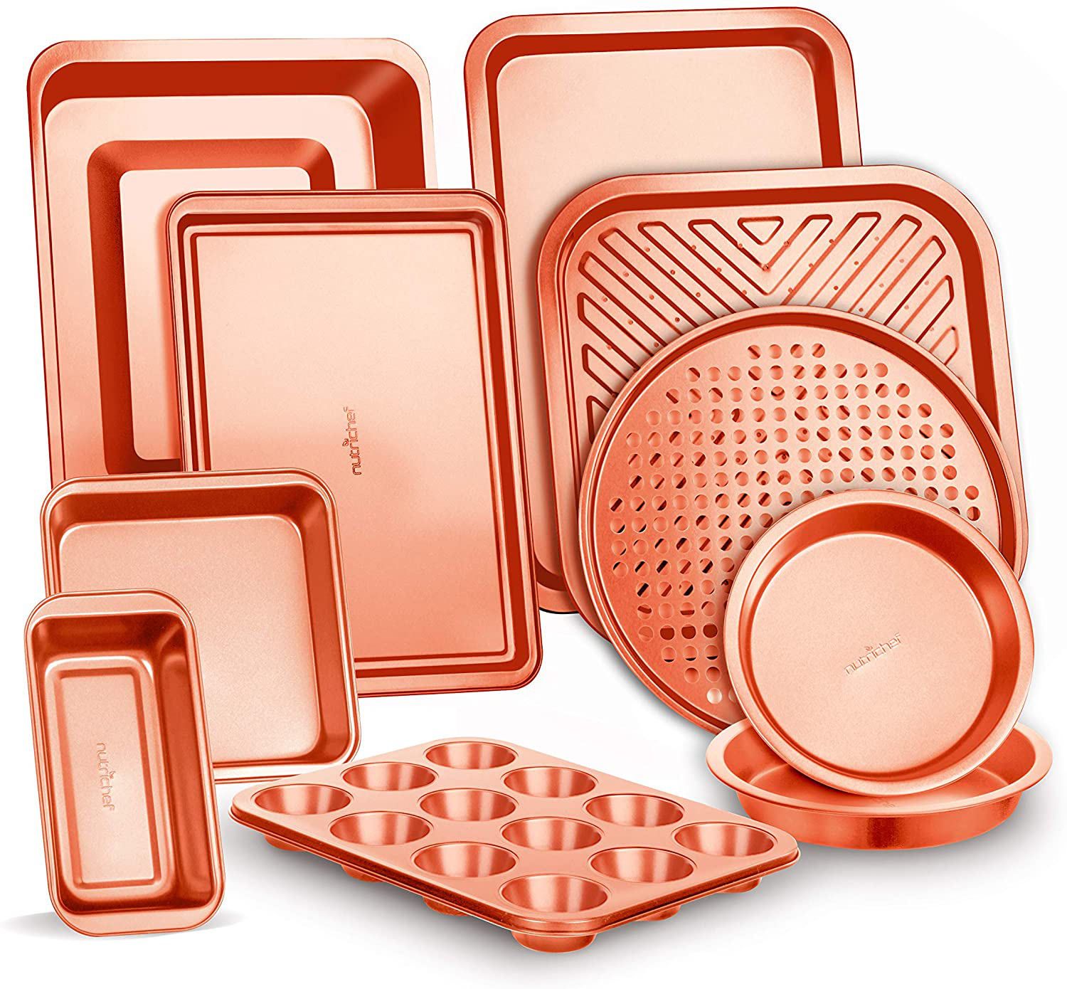 - One (1) 10-Piece Kitchen Oven Bakeware Set - Premium Carbon Steel Baking Tools with Elegant Non-stick Gray Finish Inside and Out, Dishwasher Safe & Free of PFOA, PFOS, PTFE - NutriChef