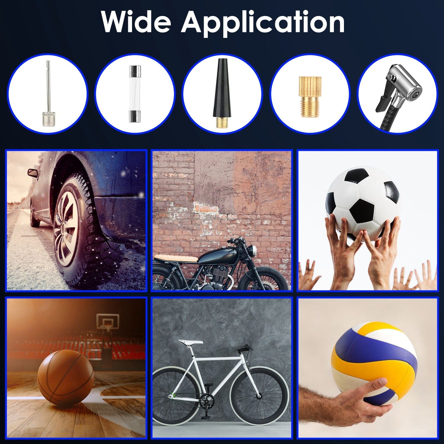 - Wide application: With 3 inflatable nozzles, 1 inflatable needle, and 1 fuse, this digital tire pump is perfect for inflating tires on cars, bikes, motorcycles, basketballs, and more. It also comes with a carrying net for storing the air pump and other accessories.