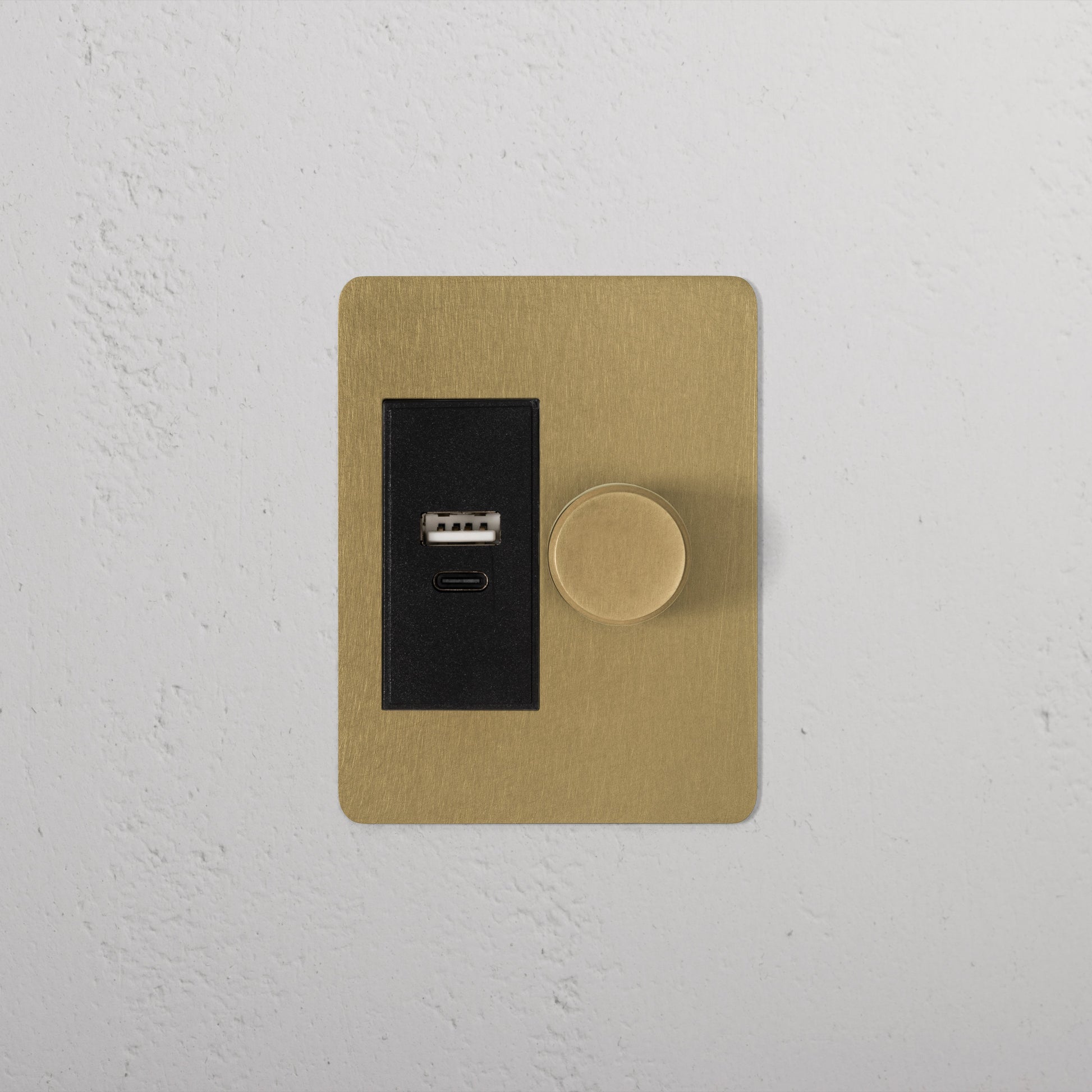 Rynx | 1G Two Way Dimmer + USB A+C Slimline Switch - Antique Brass Black