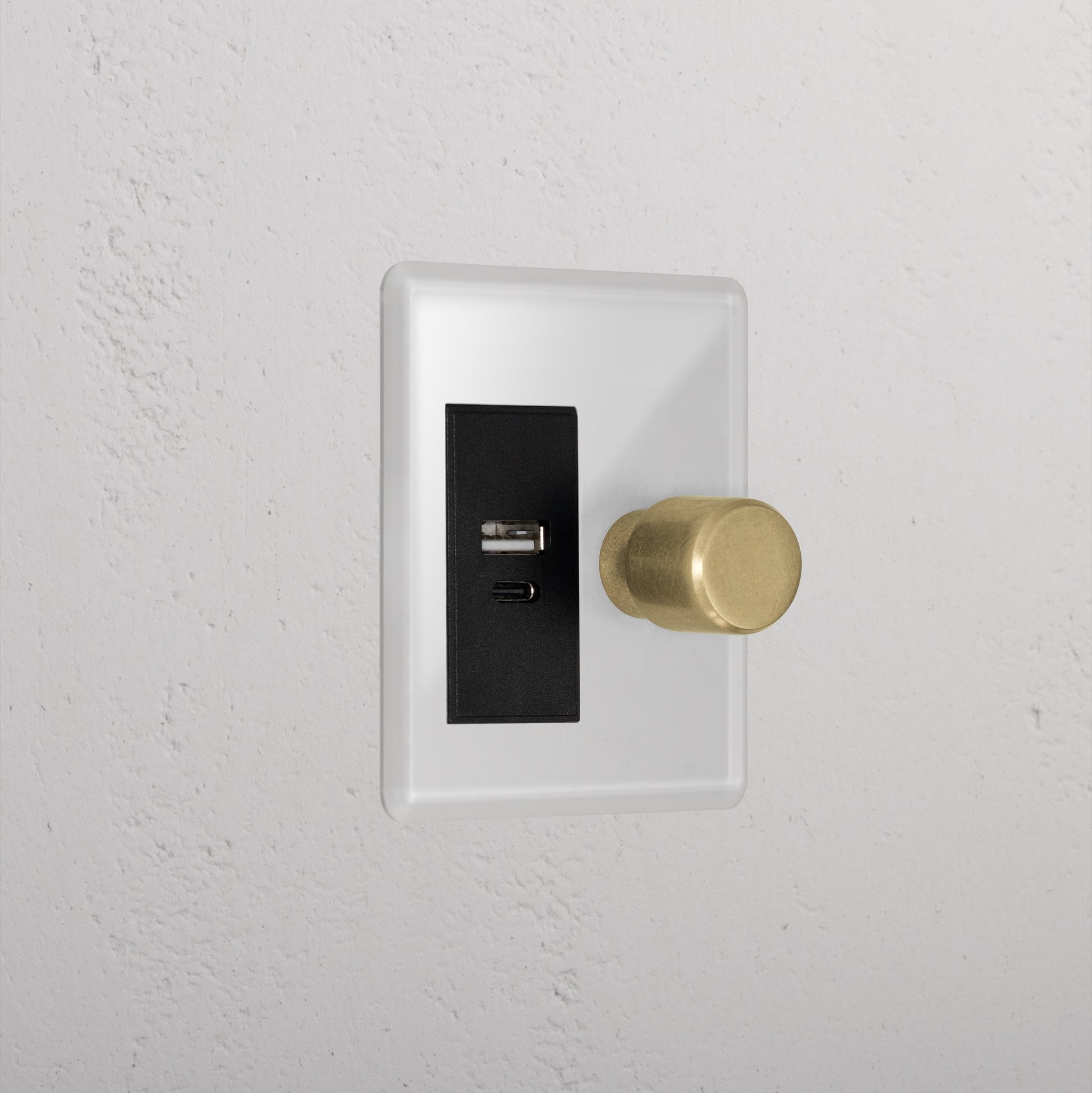 Rynx | 1G To Way Dimmer + USB A+C Slimline Switch - Clear Antique Brass Black