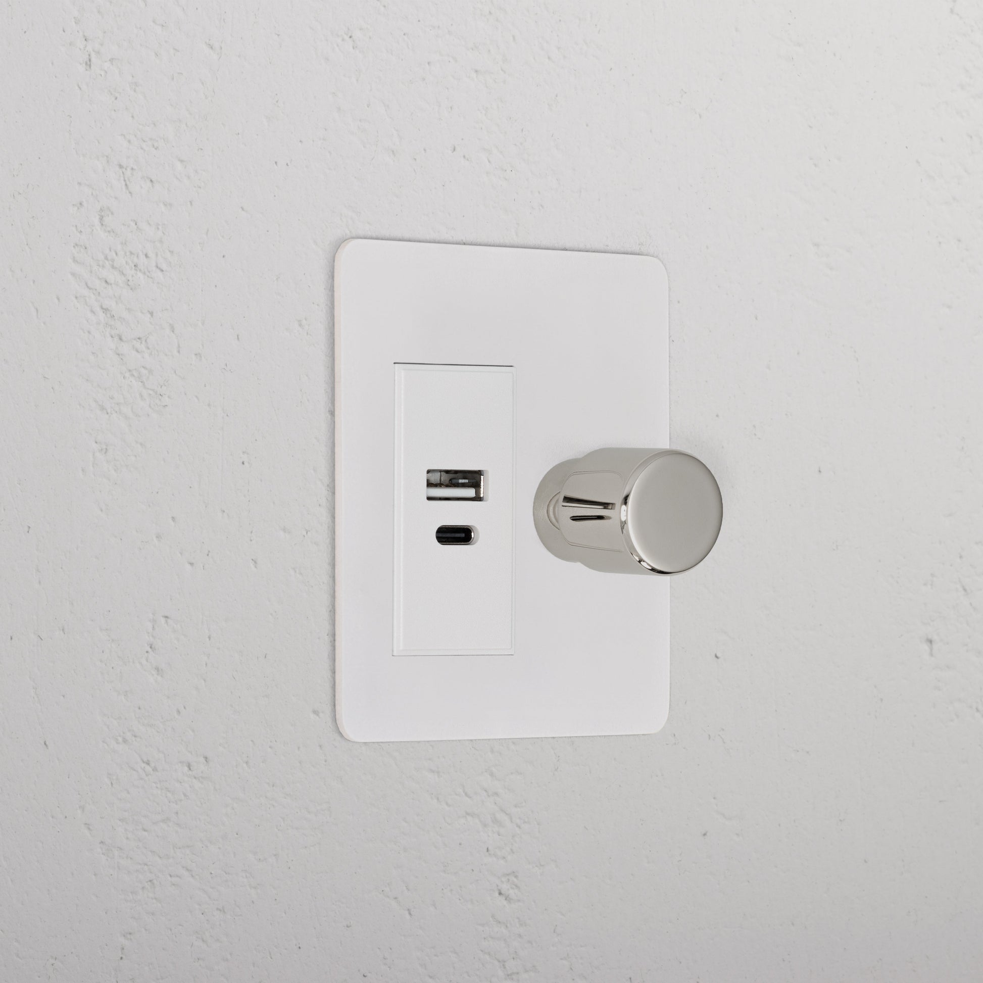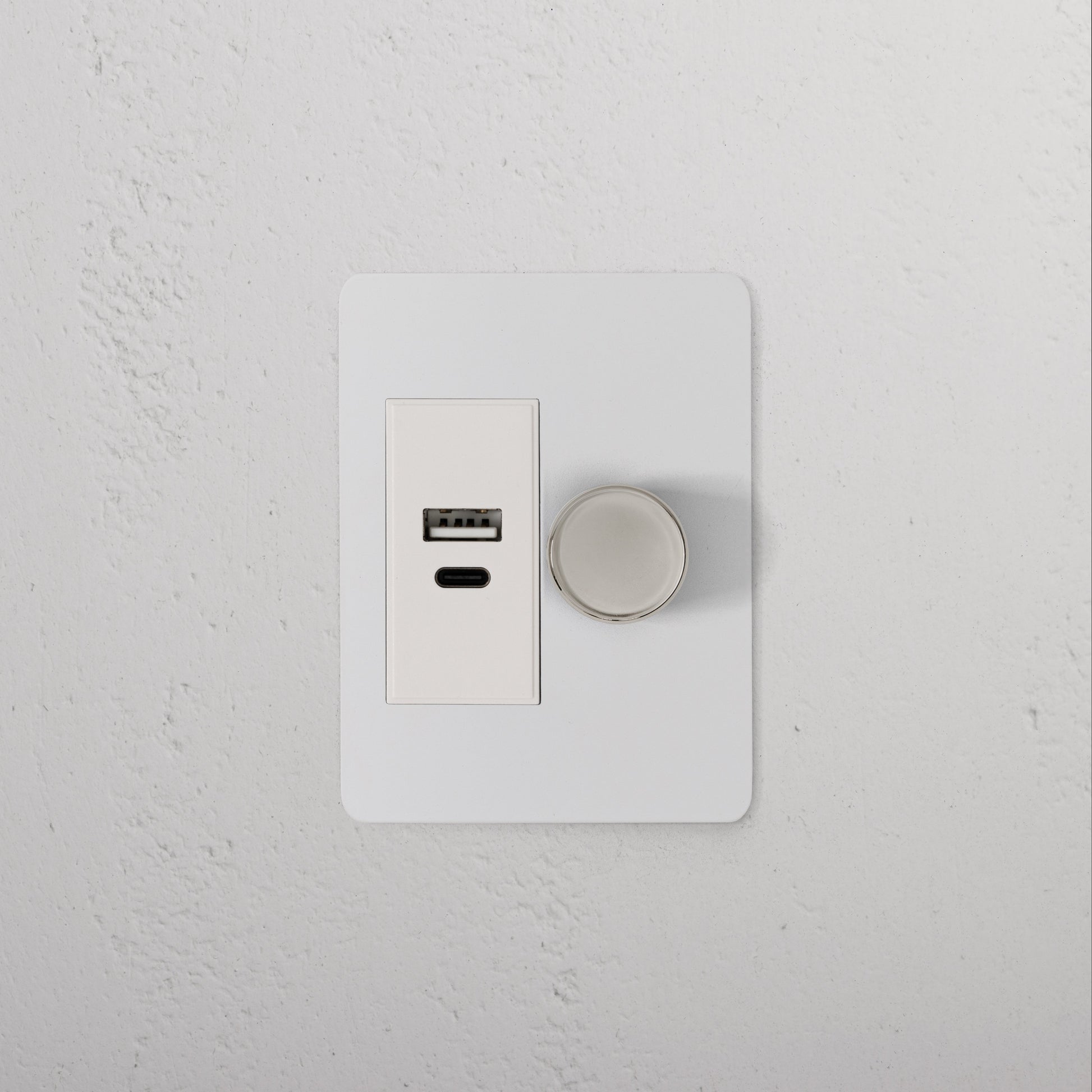 Rynx | 1G Two Way Dimmer + USB A+C Slimline Switch - Malbar Polished Nickel White