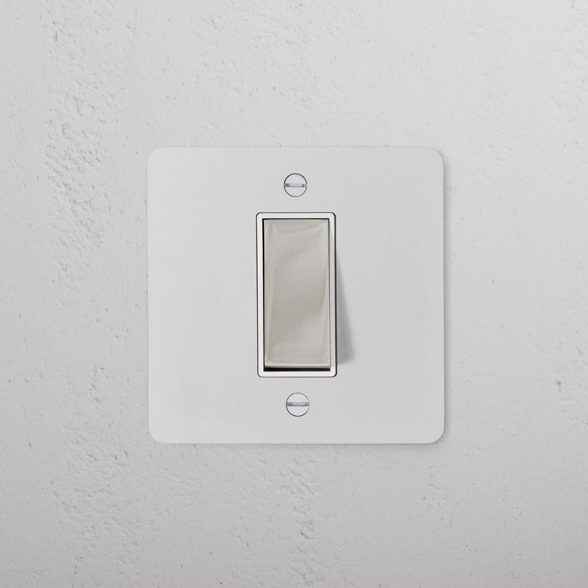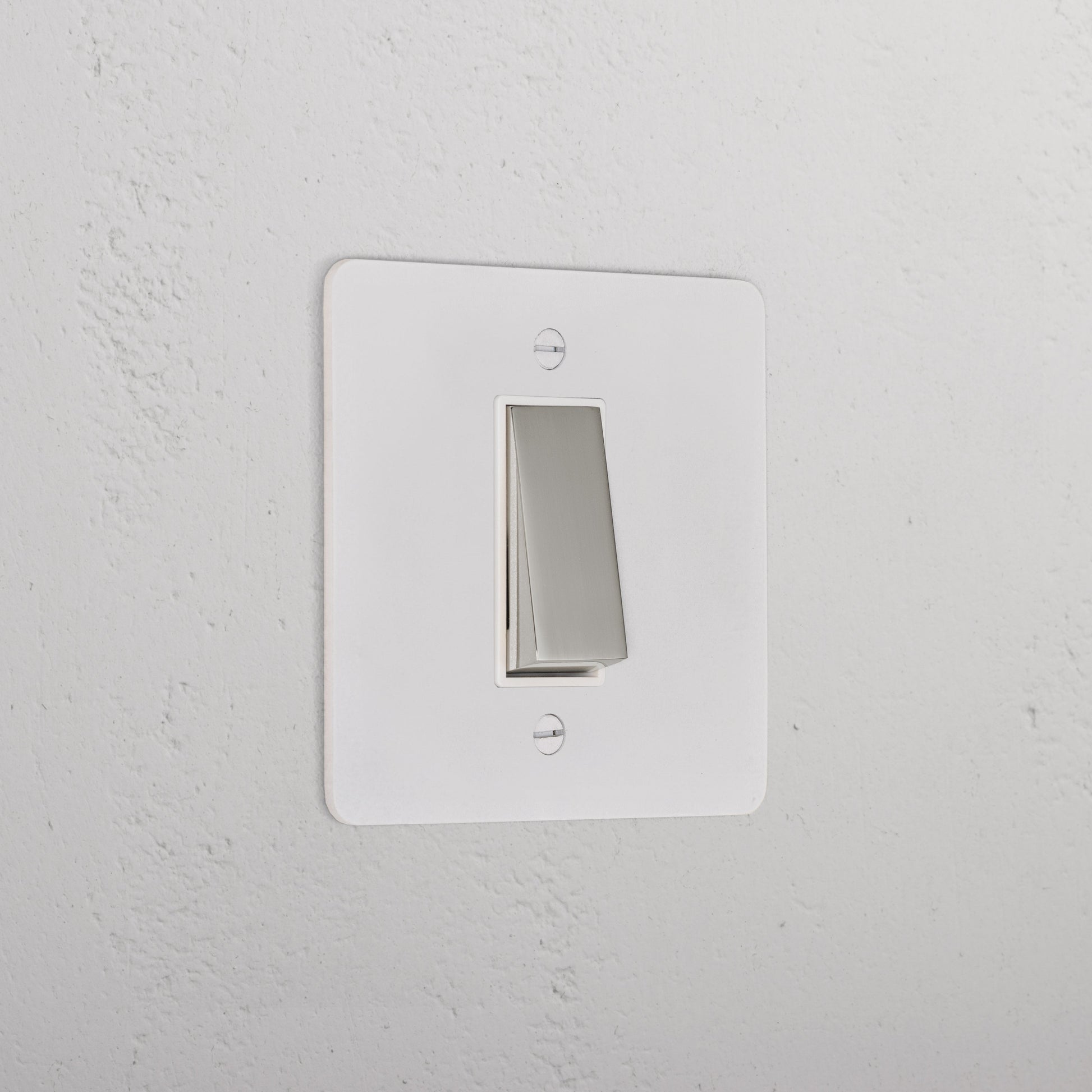 The subtle detailing of solid brass on the switch is done in Polished Nickel. Polished Nickel is our alternative to chrome. It features a slightly warmer tone, making it suitable for both warm and cool color palettes. Additionally, it is our only finish that does not age – all it needs is a lint-free cloth to restore its shine.