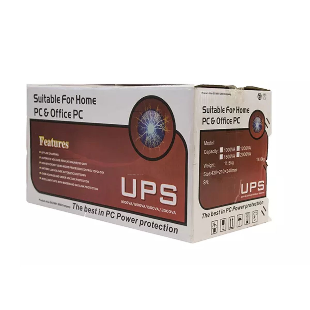 The latest Indigo Line interactive UPS-AK LCD series features a traditional LCD design for a 1kVA uninterruptible power supply with built-in batteries. It is perfect for computers and peripherals, point-of-sale systems, printers, security systems, modems, routers, and more. This sleek and dependable line-interactive UPS caters excellently to your requirements.