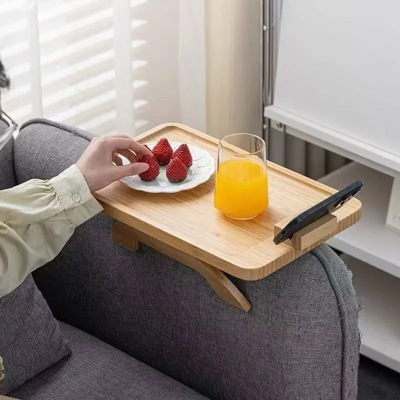 Rynx | 1 piece New style bamboo sofa armrest table with phone holder Foldable No assembly required Ideal for housewarming gift home decor