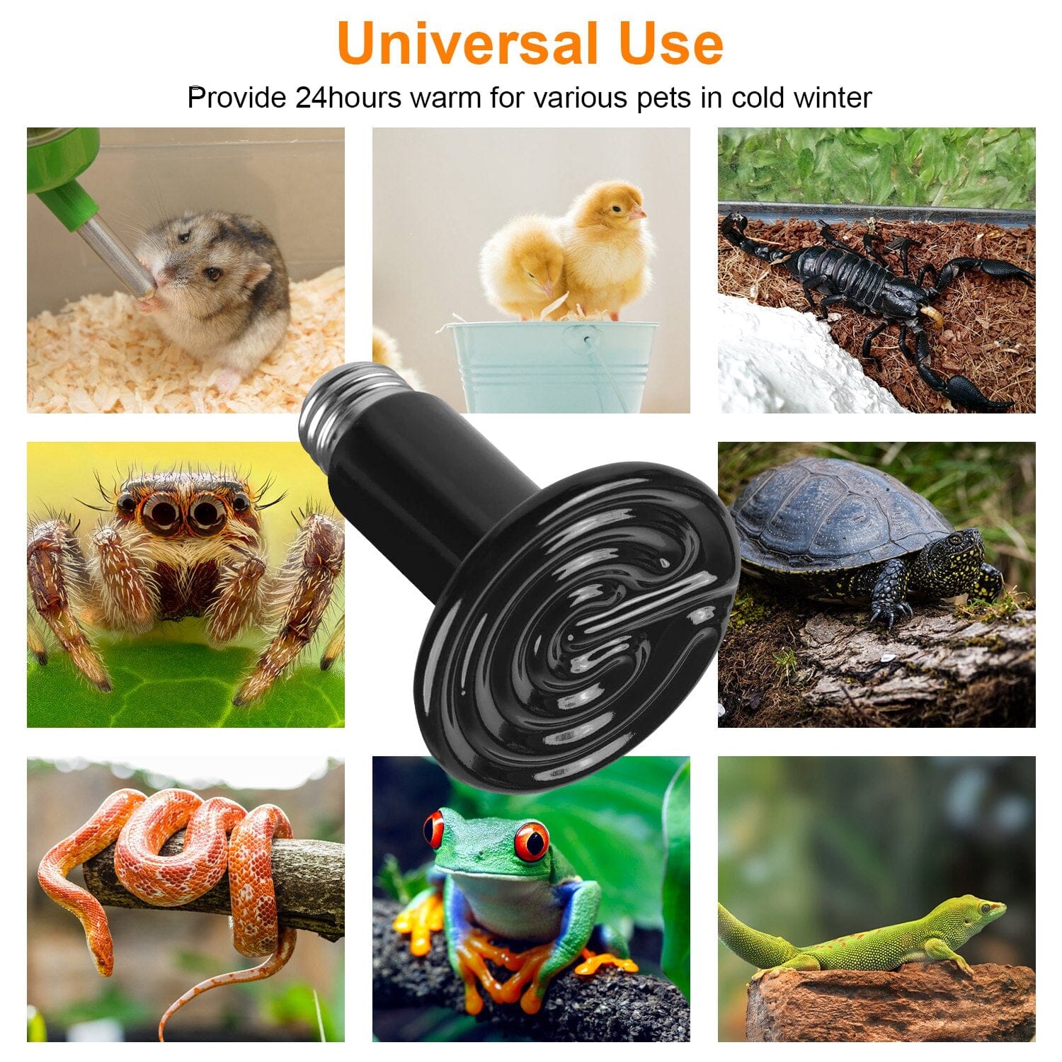- No light emission: Unlike bulbs that produce bright light, our ceramic heat lamp uses advanced infrared light technology to provide ample warmth without glare. Your pets can enjoy a natural day and night cycle without interruptions during their sleep.