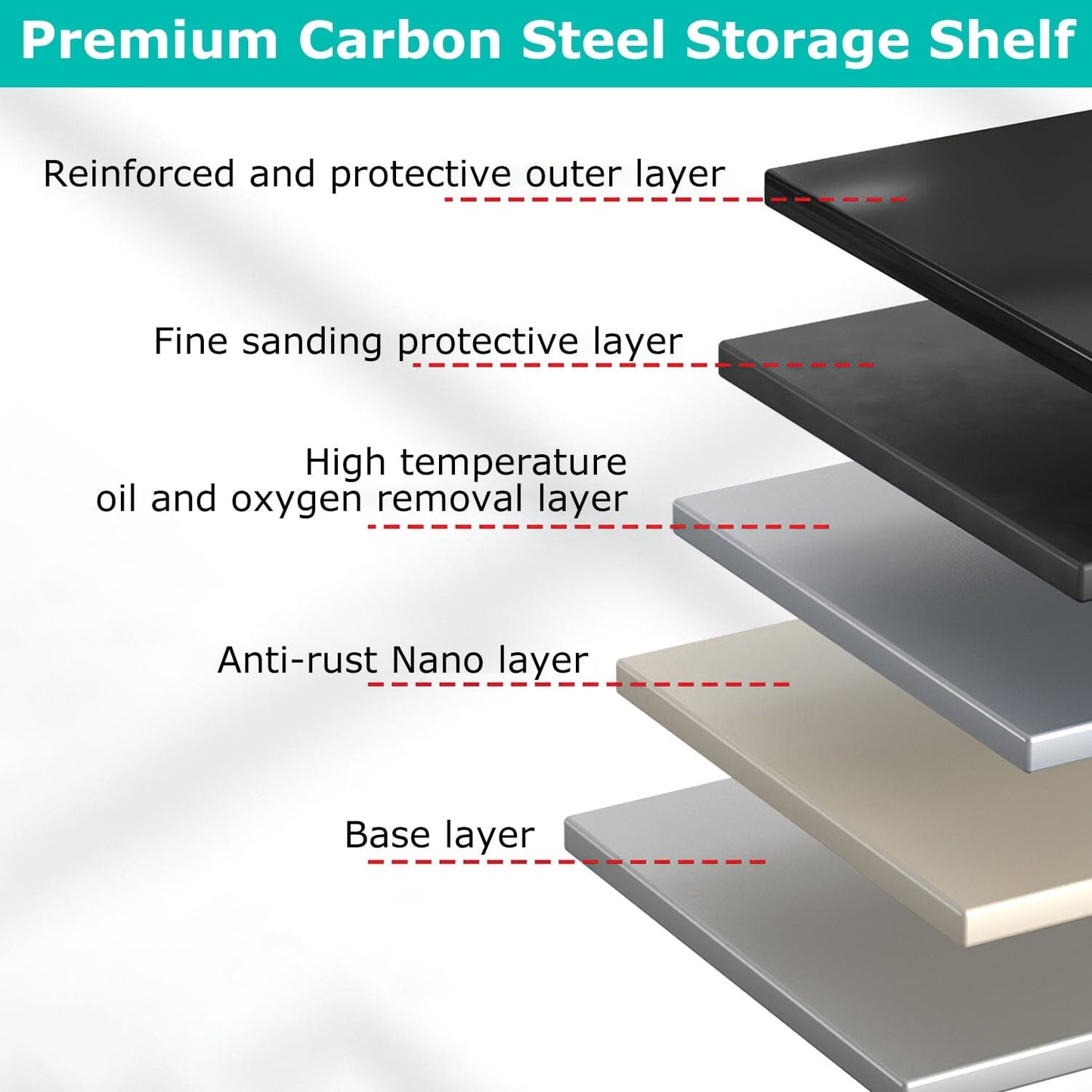 - Superior Materials: Crafted from high-quality carbon steel with a baked paint process, it is rust-resistant and offers long-lasting use. Please wipe the shelf down after rinsing it with water.