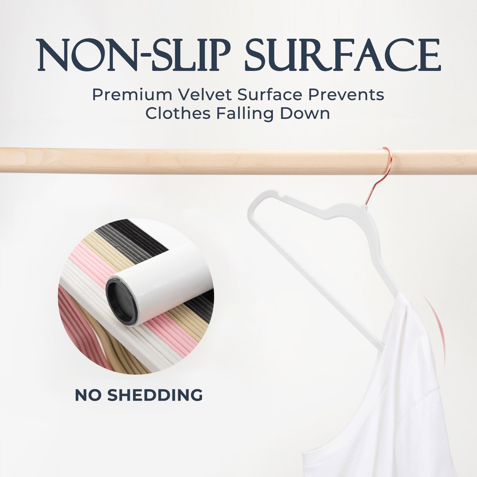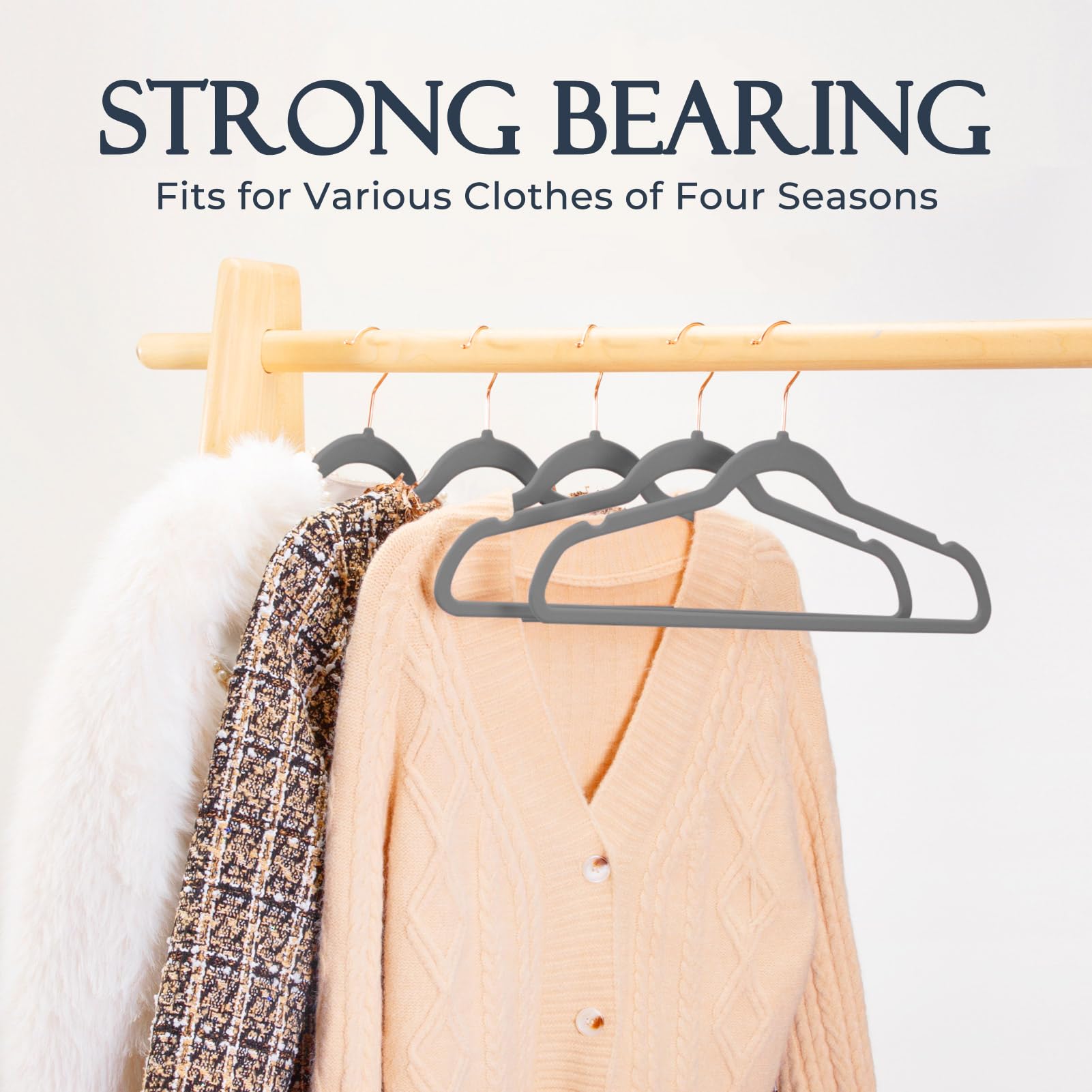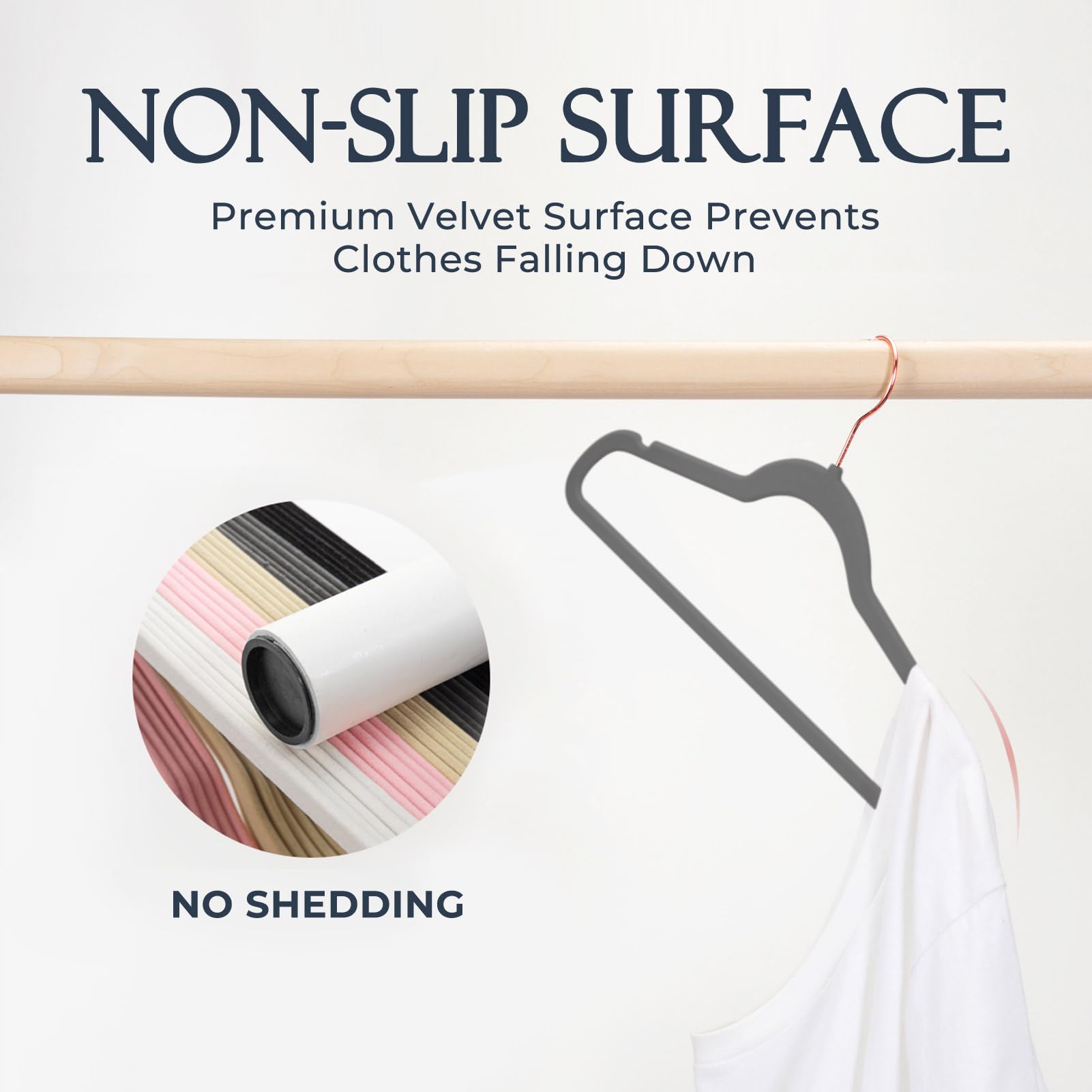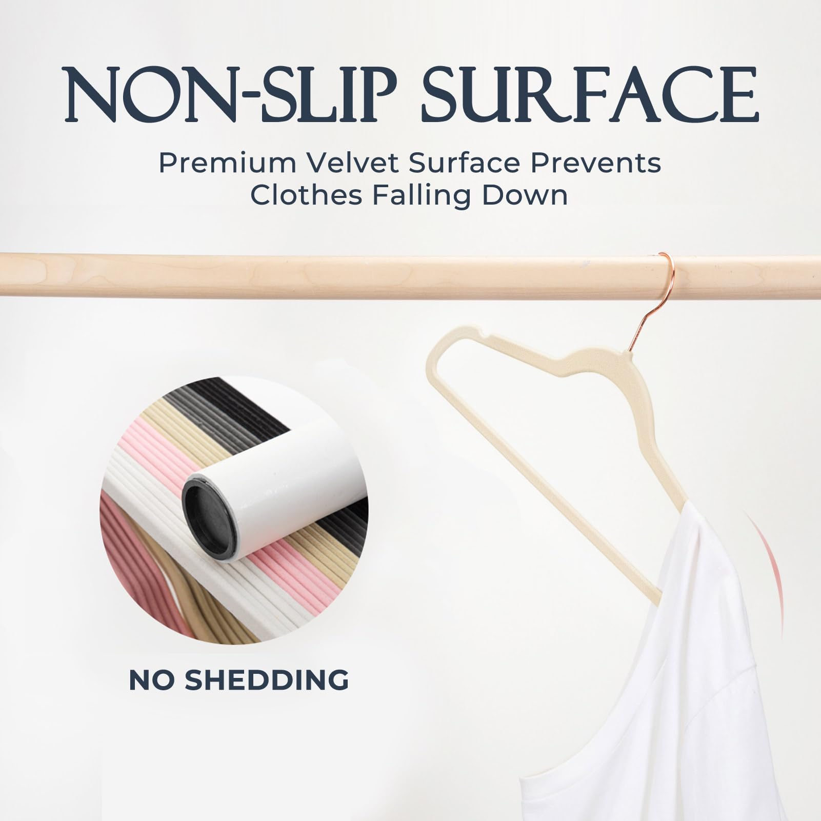 - Luxurious Velvet Finish for Slip Resistance: The soft, non-slip velvet coating prevents clothes from slipping off, keeping them neatly hung and wrinkle-free. Unlike plastic or metal hangers, these velvet hangers are gentle on both your skin and garments, ensuring no fuzz shedding or stains on your clothing.
