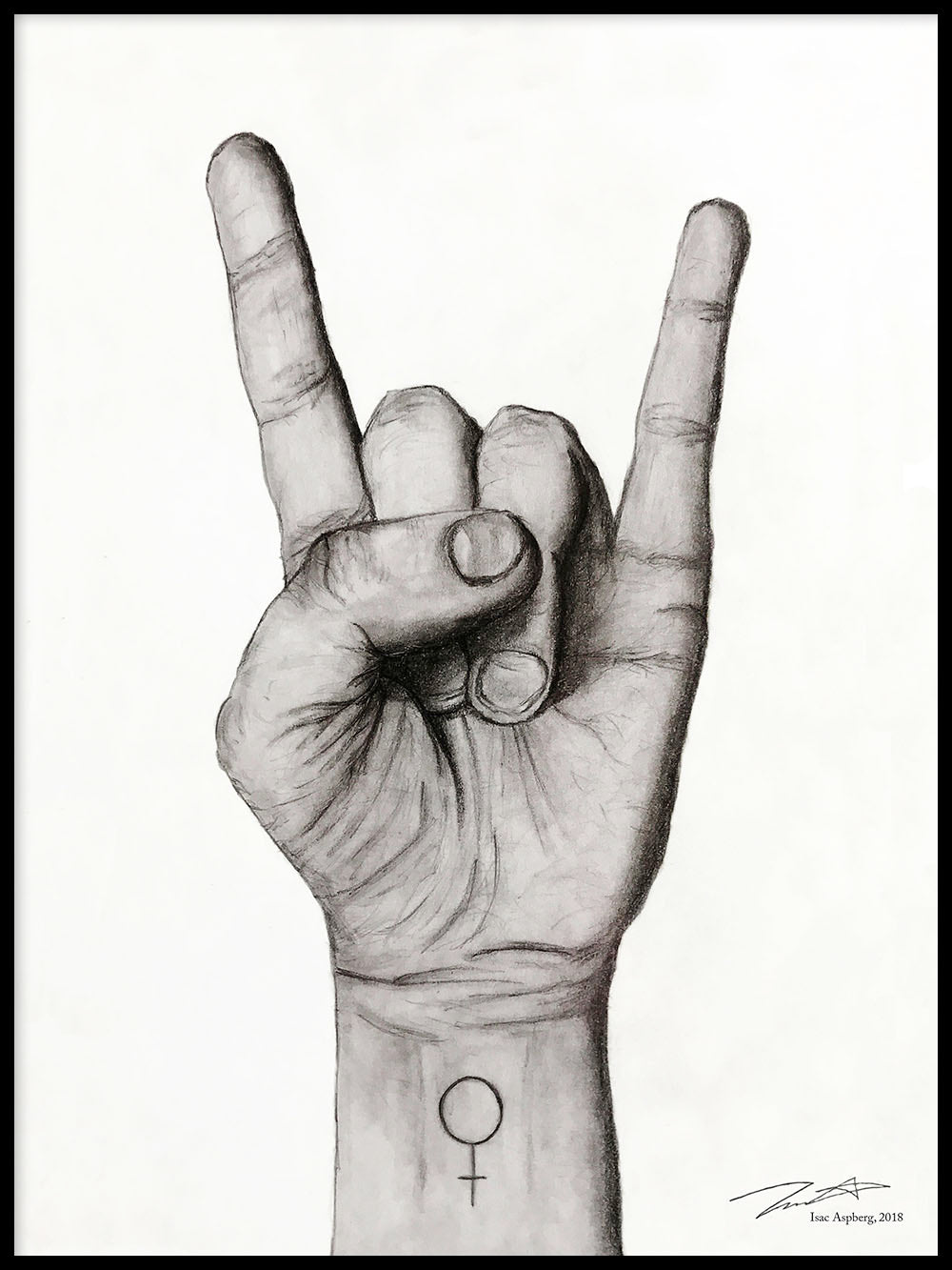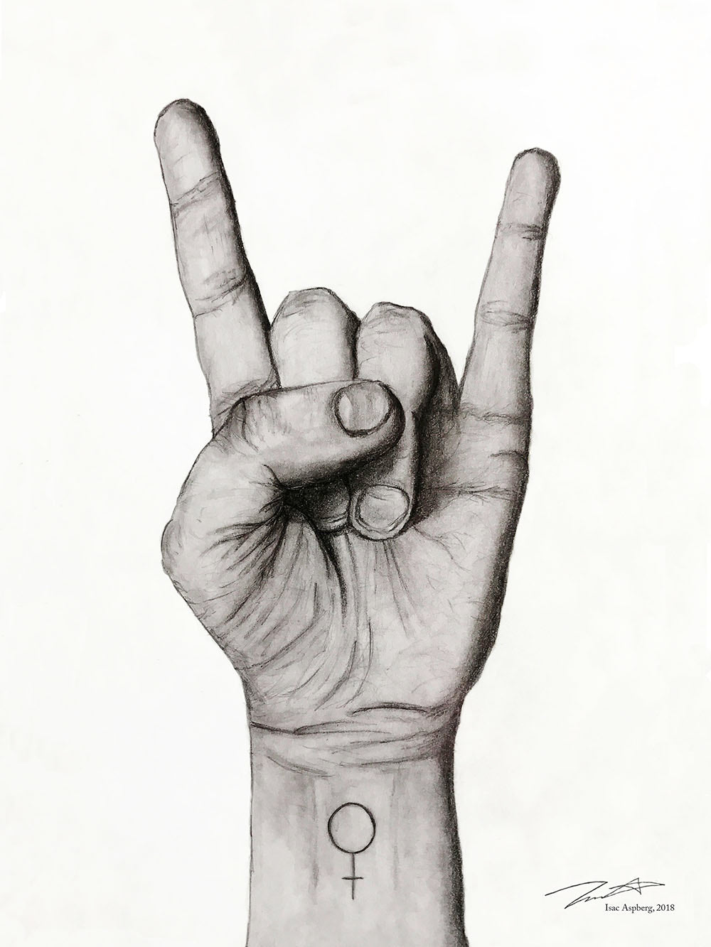 The second symbol, "Corna" or "Rock n' Roll sign," formed by the hand, is frequently seen as tough, anarchistic, and aggressive, which can be construed as typical male behavior. Does the presence of a Venus symbol soften its "hardness"? Or perhaps the opposite?