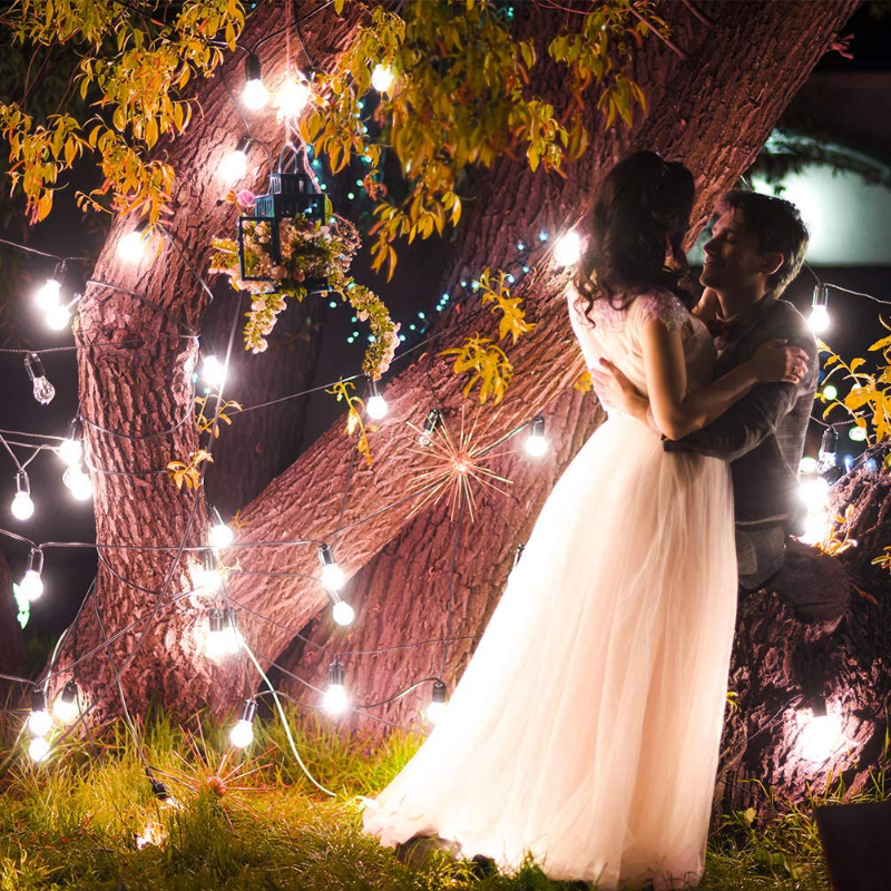 Rynx | 25Ft Waterproof Globe Patio Hanging Lights With 27 Edison Clear Bulbs