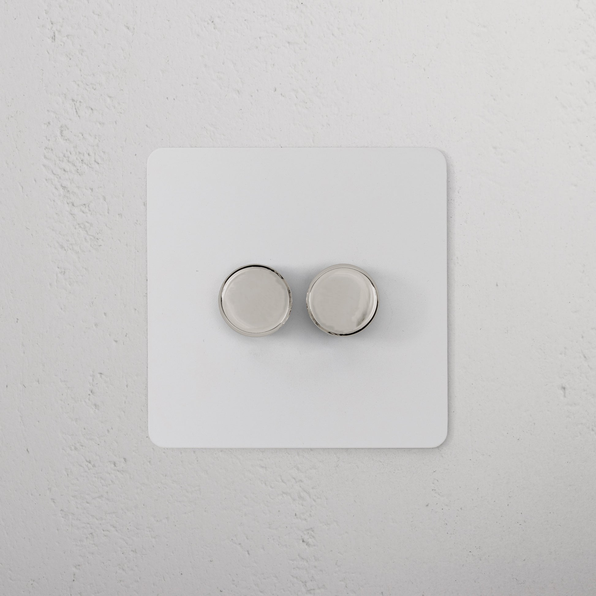 The subtle detailing switch made of solid brass is finished in Polished Nickel. Polished Nickel serves as our alternative to chrome. It carries a slightly warmer hue, making it suitable for both warm and cool color palettes. Moreover, it is our only finish that does not age – all it requires is a lint-free cloth to restore its shine.