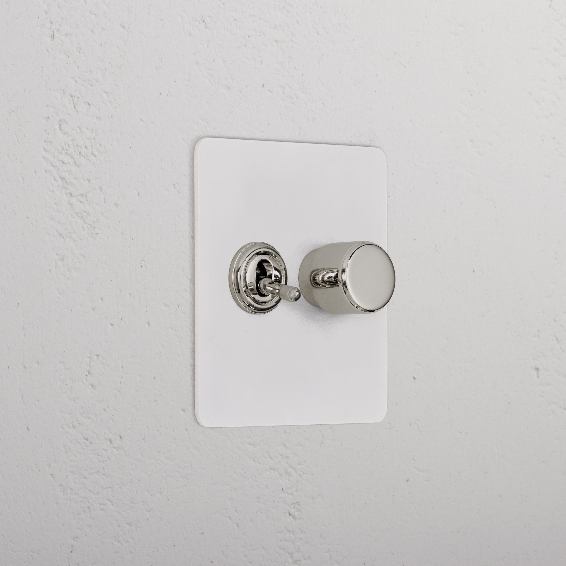 This dual-function mixed switch integrates a standard two-way toggle switch and a rotary dimmer into a single plate.