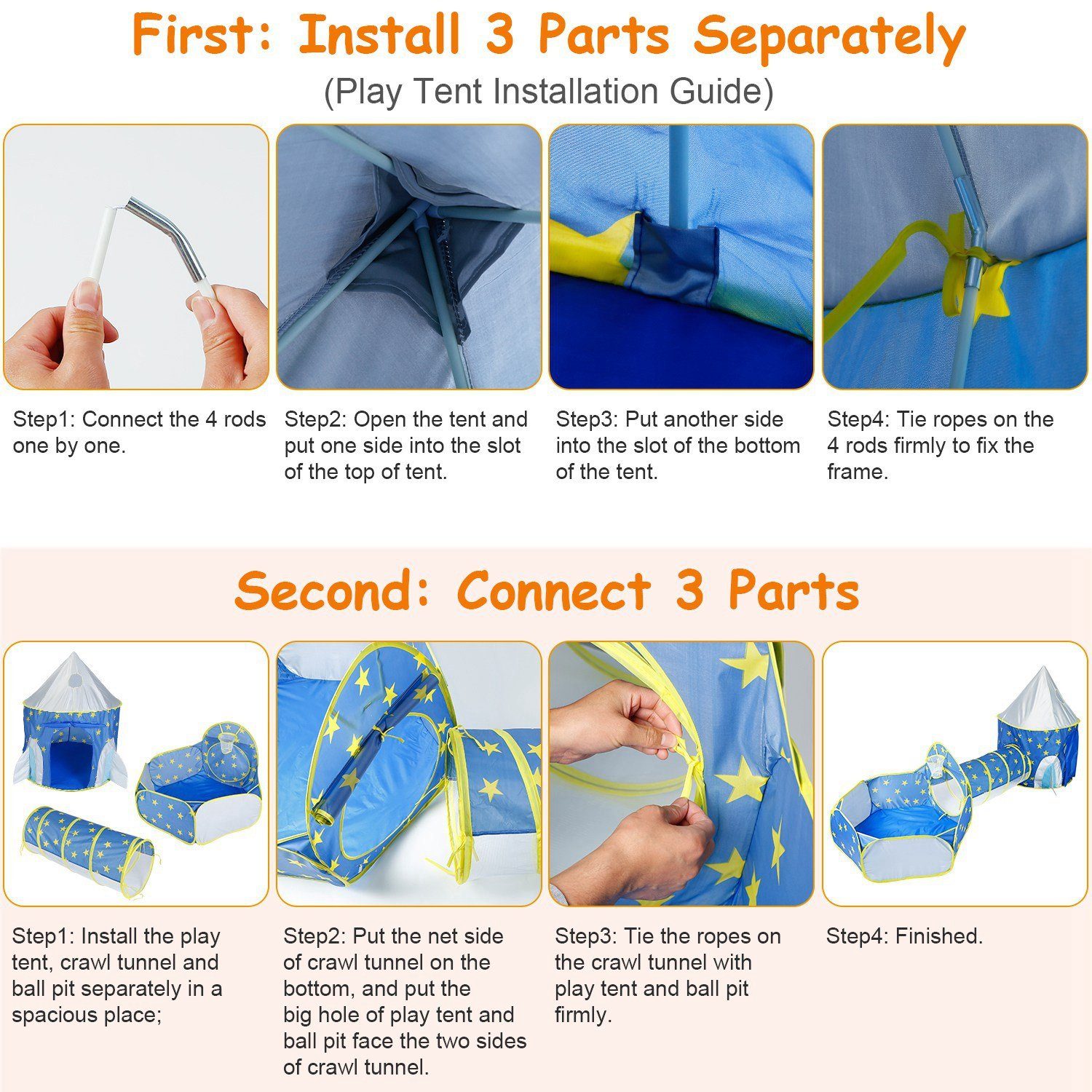 - Includes a play tent, a pool, and a crawl tunnel. Each component can be used together or separately as needed. It can also act as a playhouse for your children at home.