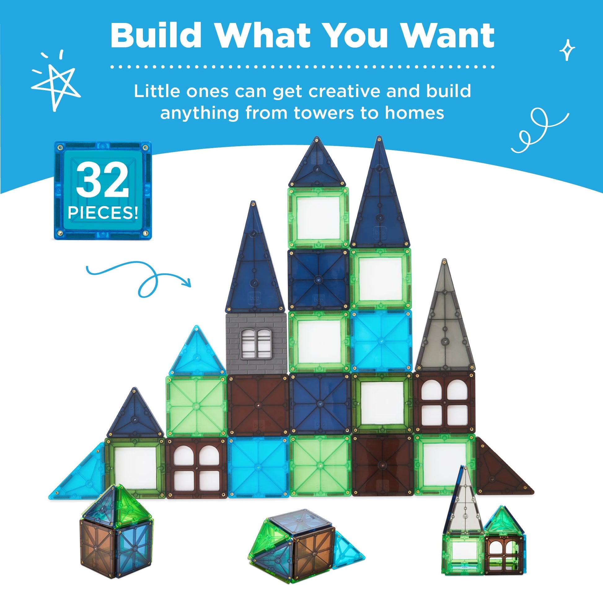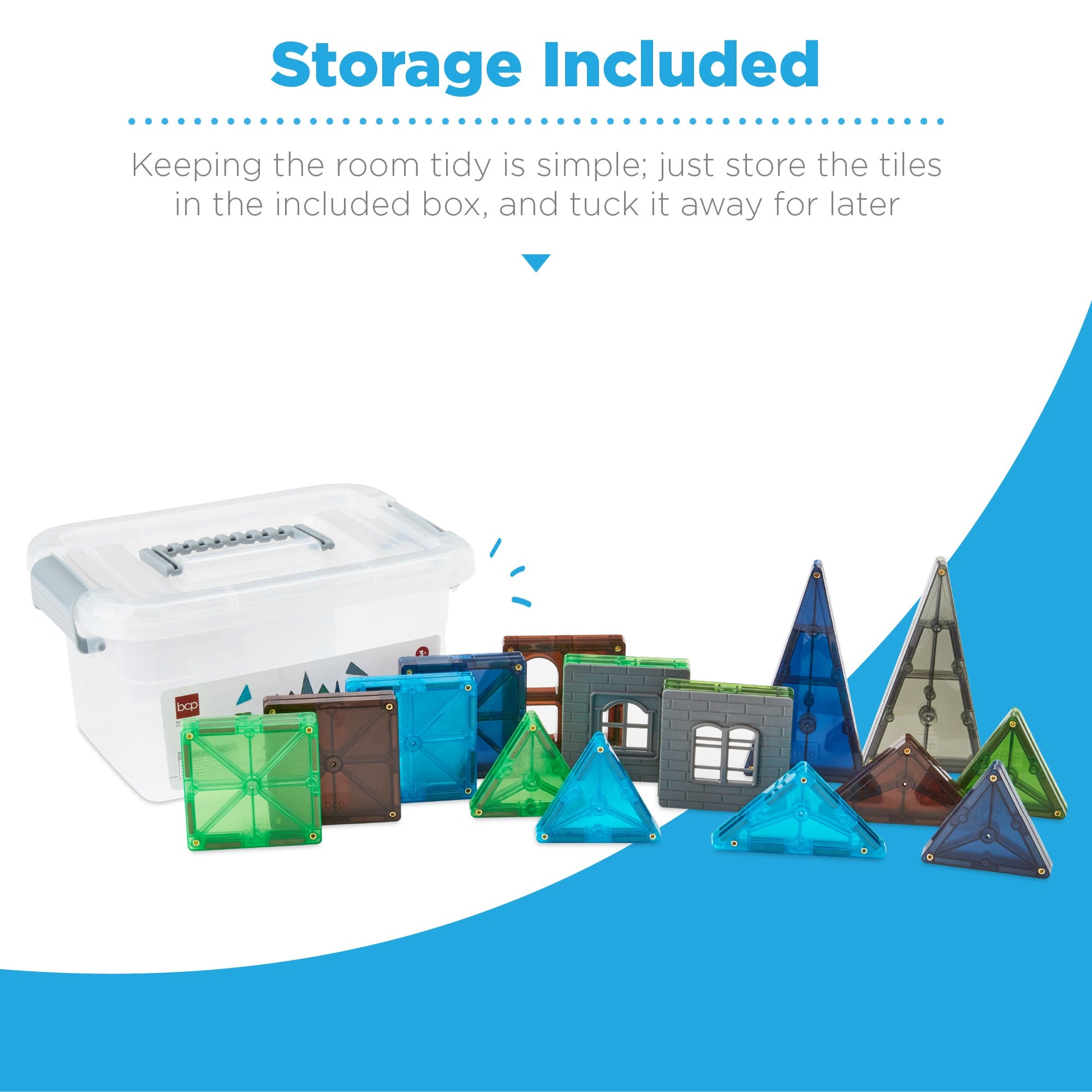 Rynx | 32-piece children's mini magnetic tiles educational STEM toy set with carrying case