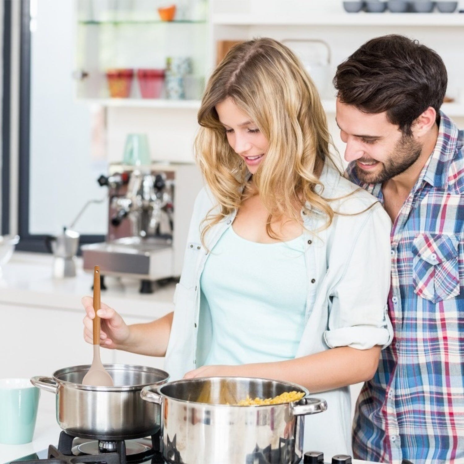 - Food-Safe Material: Made from BPA-free silicone and stainless steel, these kitchen tools are long-lasting and safe to use. No lingering odors are left on your meals. They preserve the flavors of your food!