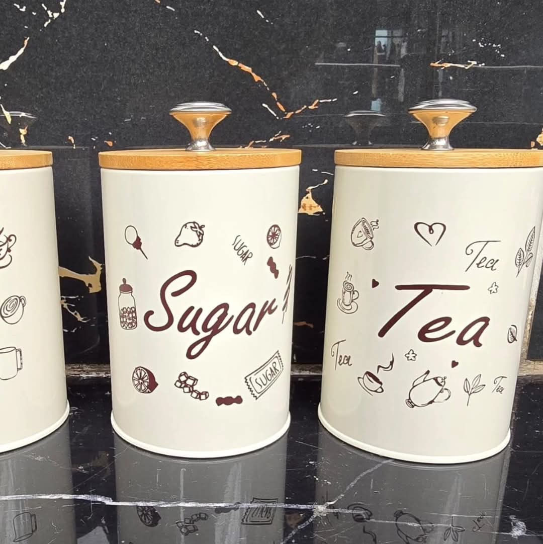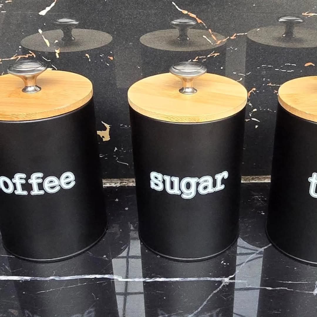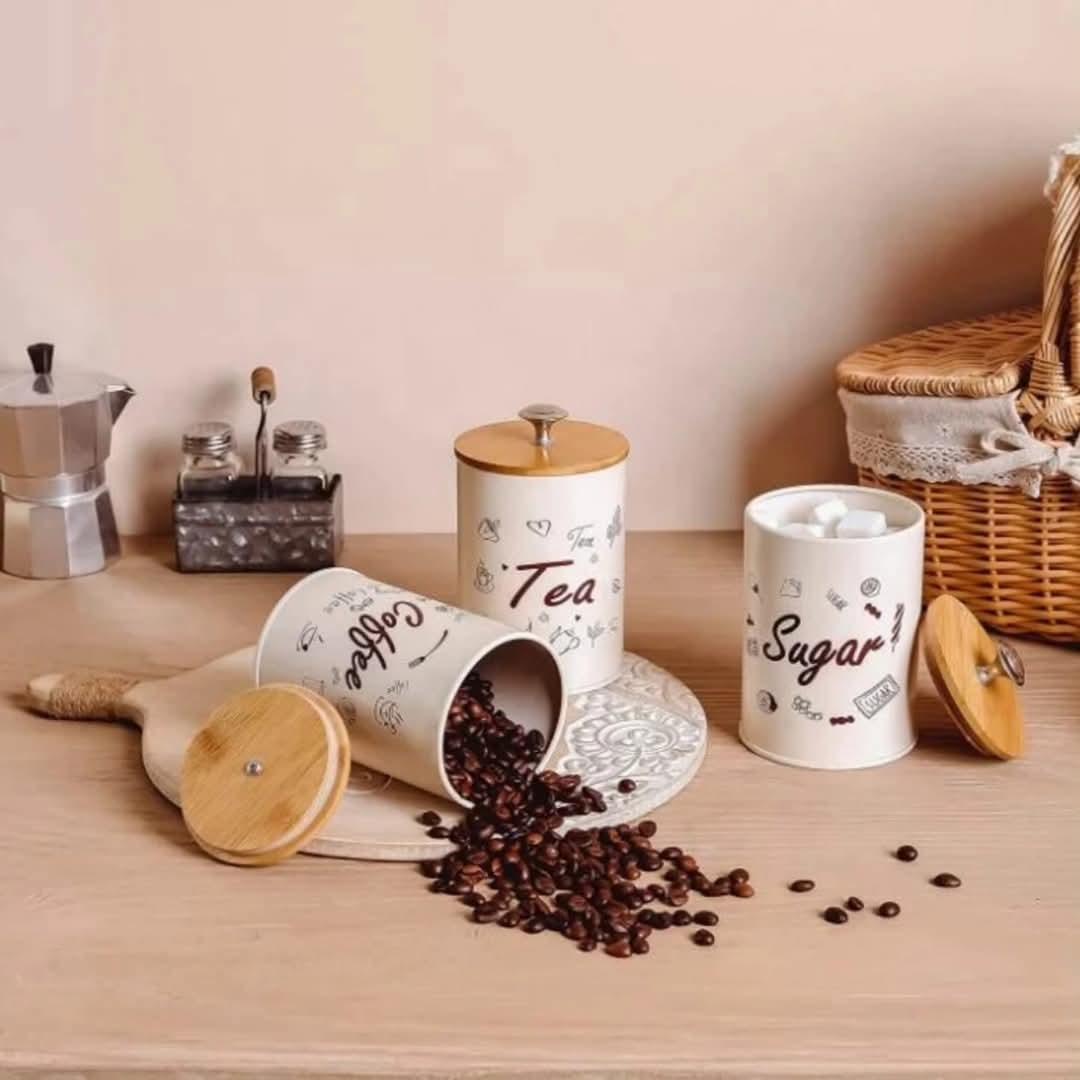 Set of 3 metal containers with bamboo lids
