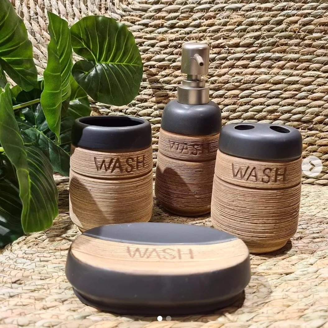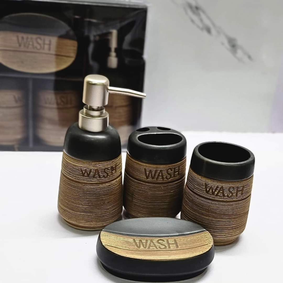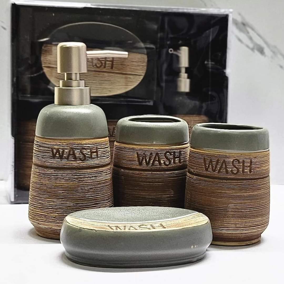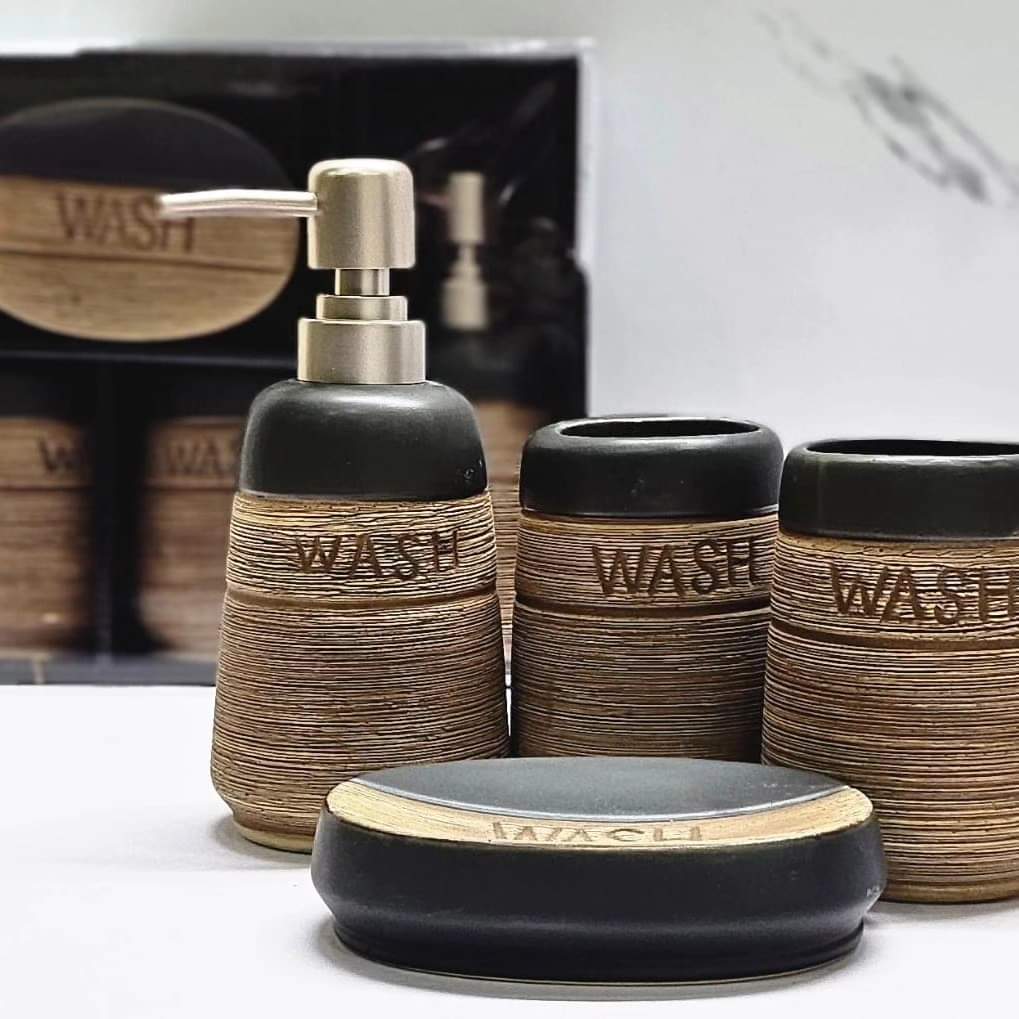 Chic Ceramic Bathroom Set 4-in-1 ✓Includes soap dish, cup, liquid soap dispenser, and holders for toothbrushes and toothpaste