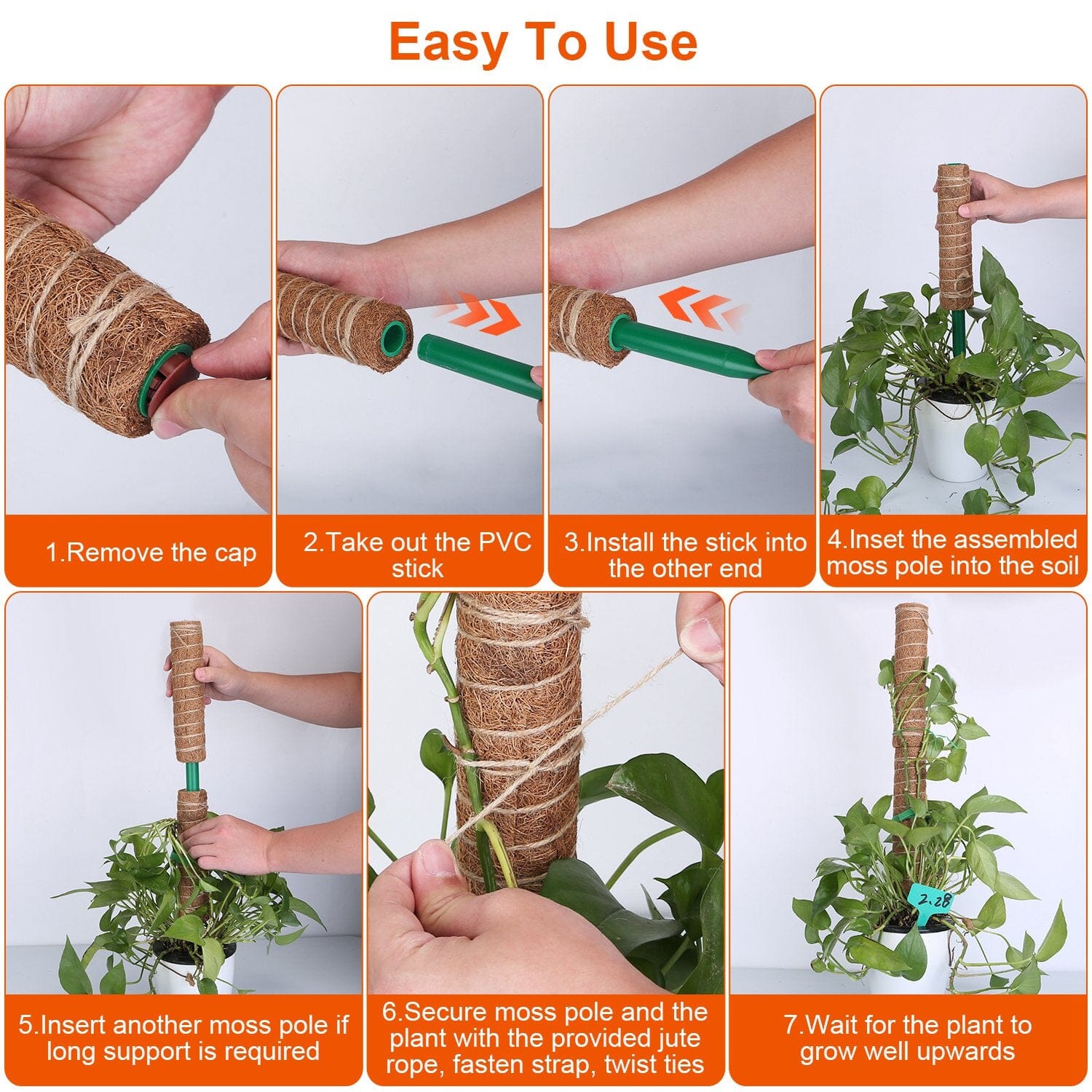 - Excellent plant companion: These moss poles provide support for climbing potted plants to thrive both indoors and outdoors, while helping to retain moisture for their aerial roots to grow upwards toward the light. Included are 6.6 feet of jute twine, 6.6 feet of fastening straps, and 65.6 feet of twisted tape, ensuring secure placement of the moss pole. The accompanying 10 plant labels are also great for your gardening tasks.