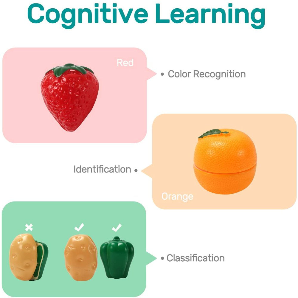 - Fun Cutting Play Food: Toy food that can be easily peeled and cut. When cut, the food creates a realistic chopping sound that gives your child a real cutting experience.