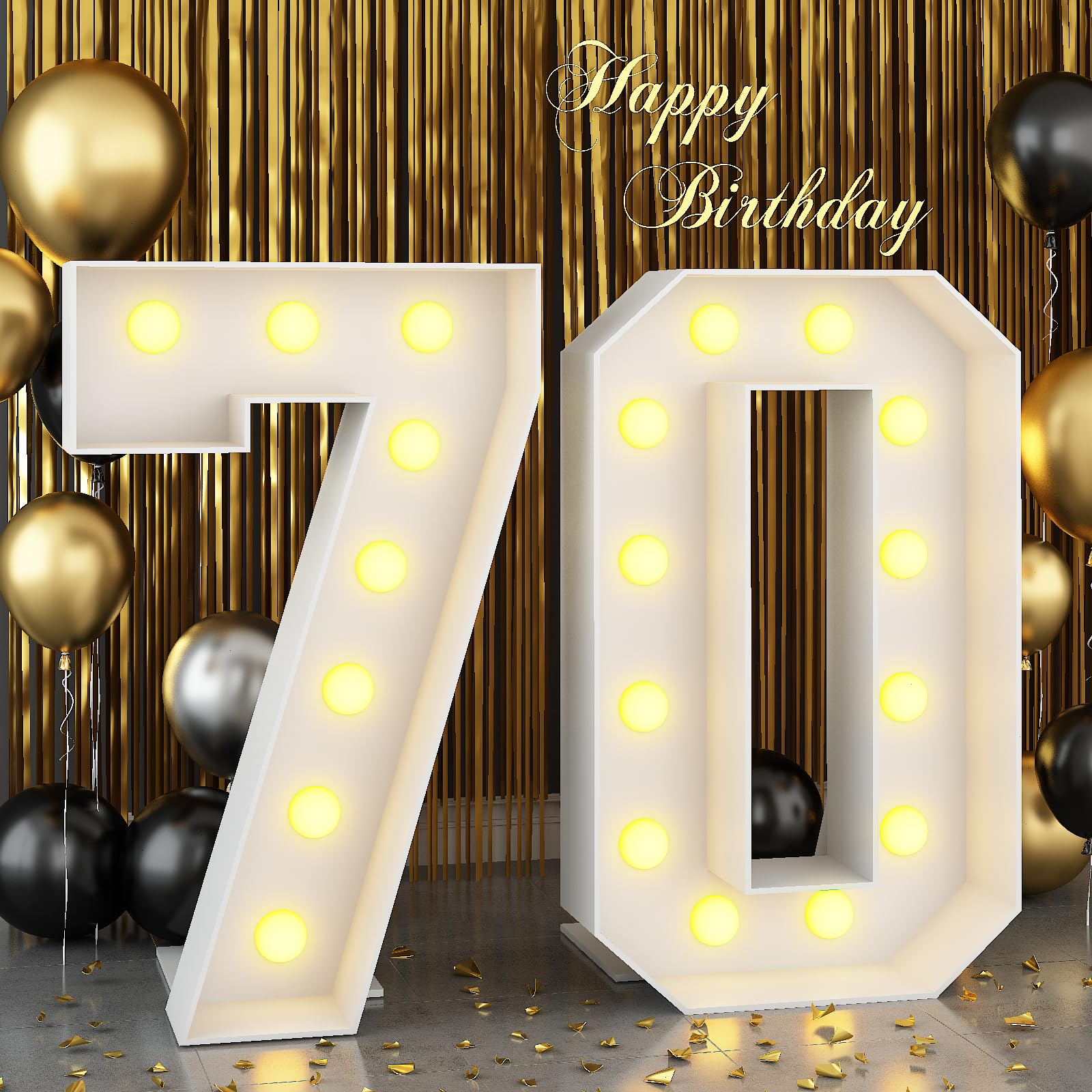 Rynx | 4Ft Light Up Number With Track 70 Light Up Bulbs White Marquee Frame For Men Women 70th Birthday Celebration Decorations Pre-cut Mosaic Cardboard Large Cutout Thick Foam Boards Sign Jubilee