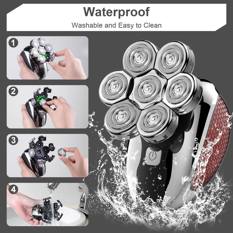 - Waterproof Wet & Dry Shaver Our head shaver for bald heads utilizes waterproof technology, allowing for both wet and dry use. For a more thorough shaving experience, we recommend using shaving cream to soften the stubble before using the head shaver. The detachable and washable head makes cleaning simple; just use the small brush to clean the shaving head under running water. (Note: Please avoid submerging the machine in water.)