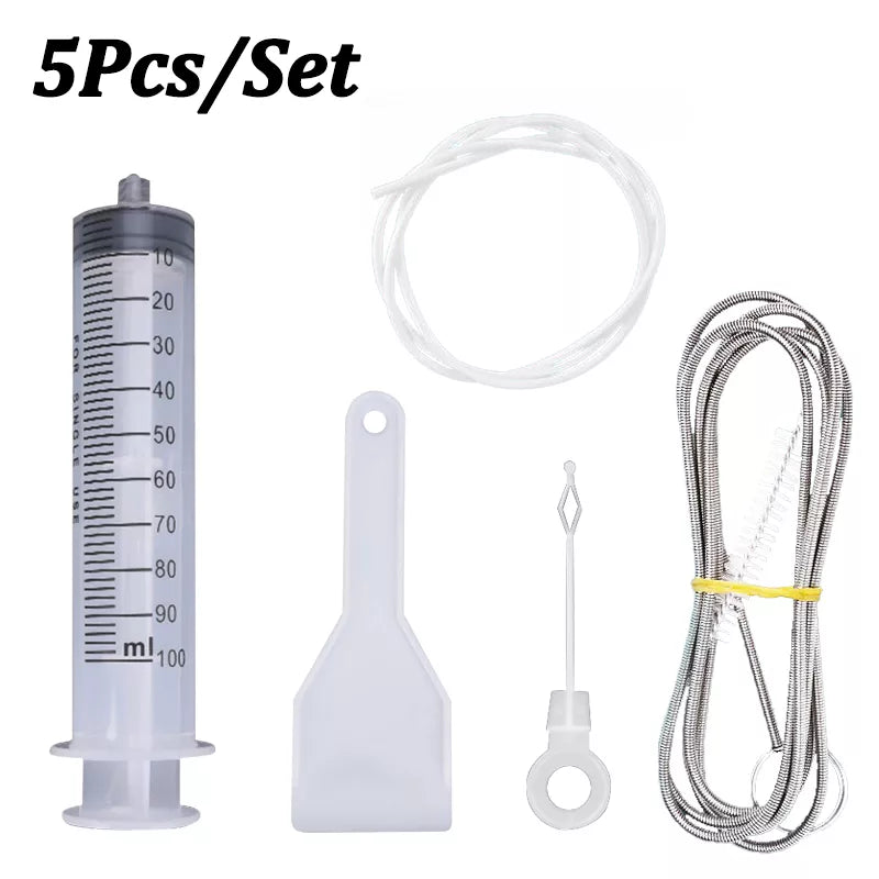 - Kit Includes: Syringe x1, Hose x1, Stainless Steel Dredging Brush x1, Anti-Blocking Drainage Hole Rod x1, Ice Shovel x1