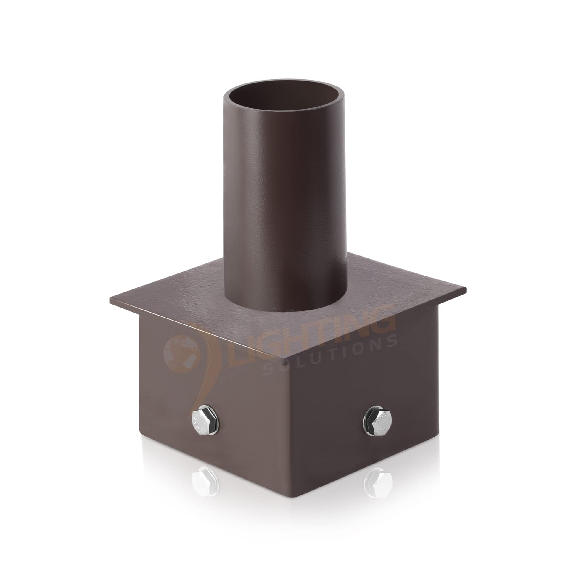This sturdy steel mounting bracket is crafted to accommodate any 5-inch square fiberglass, concrete, or steel pole, and it comes with a set of components for quick and easy installation! It features a vertical tenon measuring 2-3/8 inches for mounting outdoor lighting in parking areas, such as slip-fit mounted light poles, parking lot illumination, or floodlights for area lighting. The bracket designed for 5X5 poles fits into the top of a 5-inch square pole and has an overall height of 7-9/32 inches. The tenon measures 2-3/8 inches with a height of 4-1/8 inches.