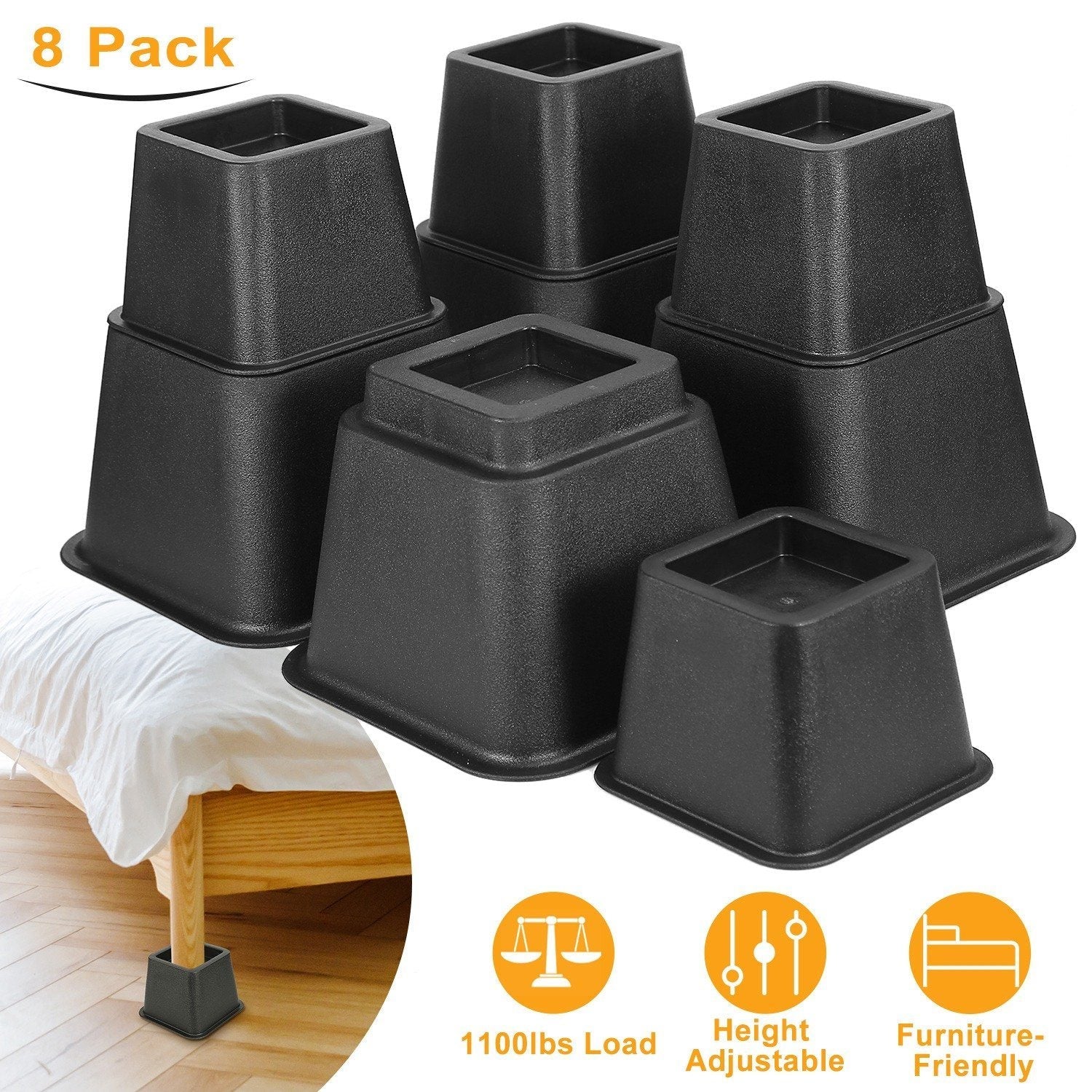 - Includes 8 pieces of furniture risers (4 large, 4 small), which are incredibly helpful for raising furniture height. Additionally, the small riser can be stacked onto the large one to extend the height up to 20 cm.