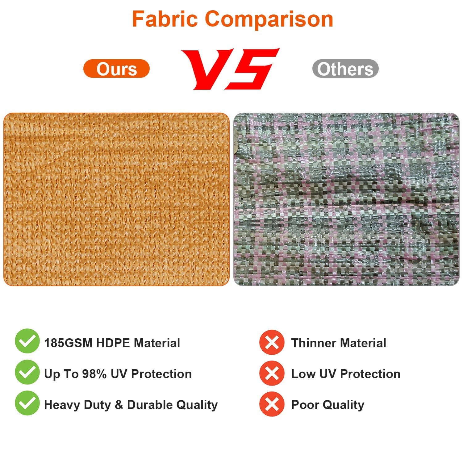 - 98% UV protection: Crafted from 185GSM heavy-duty high-density polyethylene fabric, this shade sail can block up to 98% of harmful UV rays, protecting you and your family from sunburn while providing enjoyable natural lighting on warm summer days.