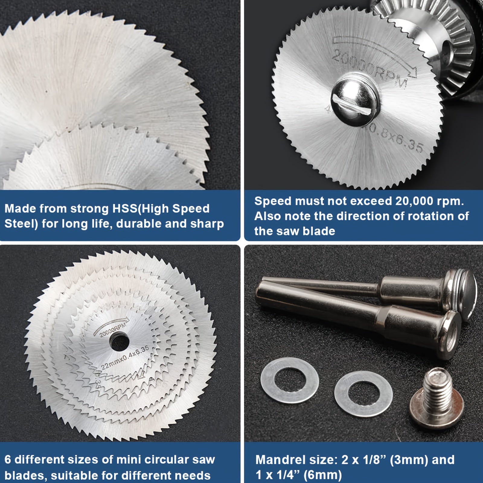 - 6pcs HSS Saw Blades: Made from durable steel, these high-speed cutting blades are ideal for precision cutting through various materials like wood, plastic, and aluminum.