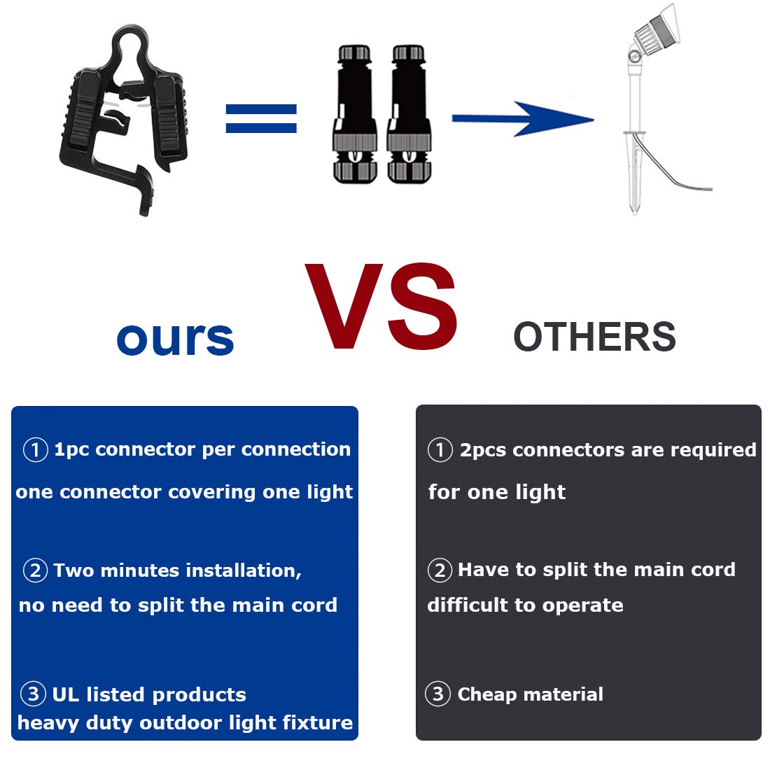 - RELIABLE SAFETY AND QUALITY: UL-listed low-voltage wire connectors for landscape lighting guarantee that each connector is of high quality, ensuring a secure fit and solid connection for long-lasting outdoor use.