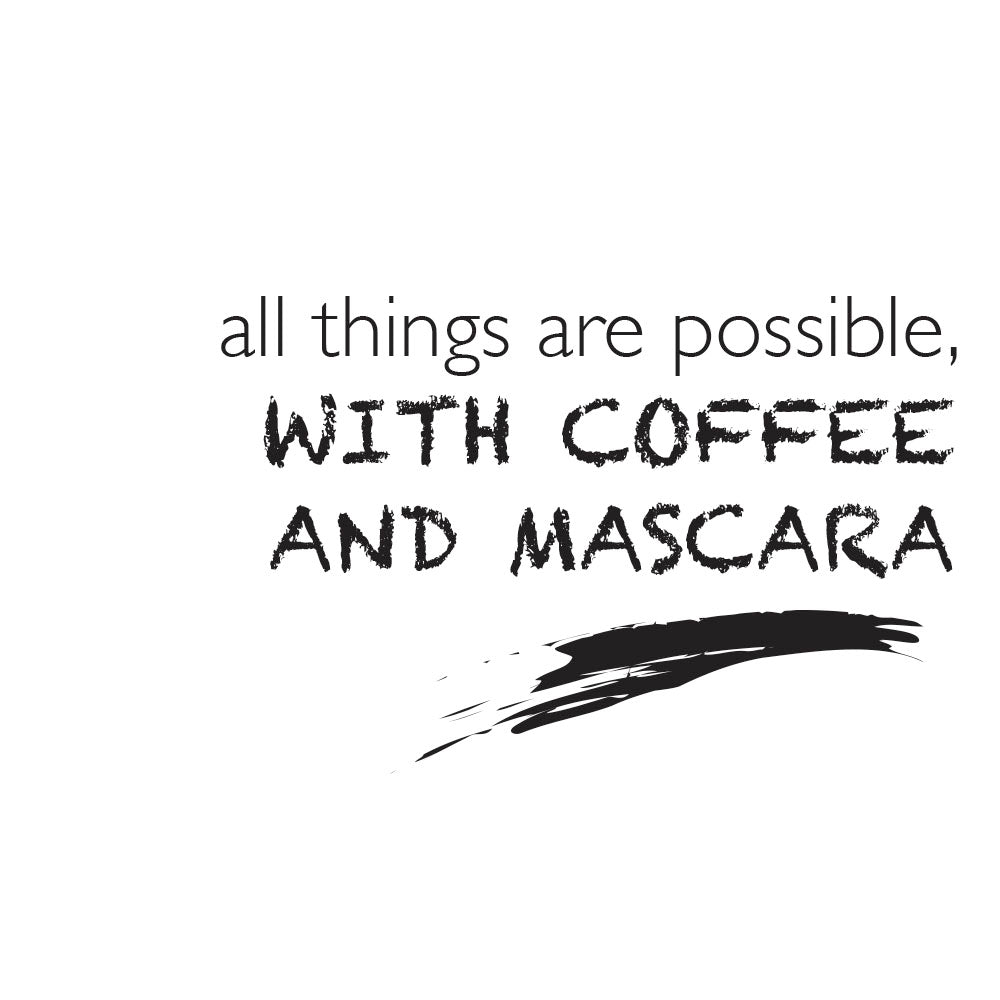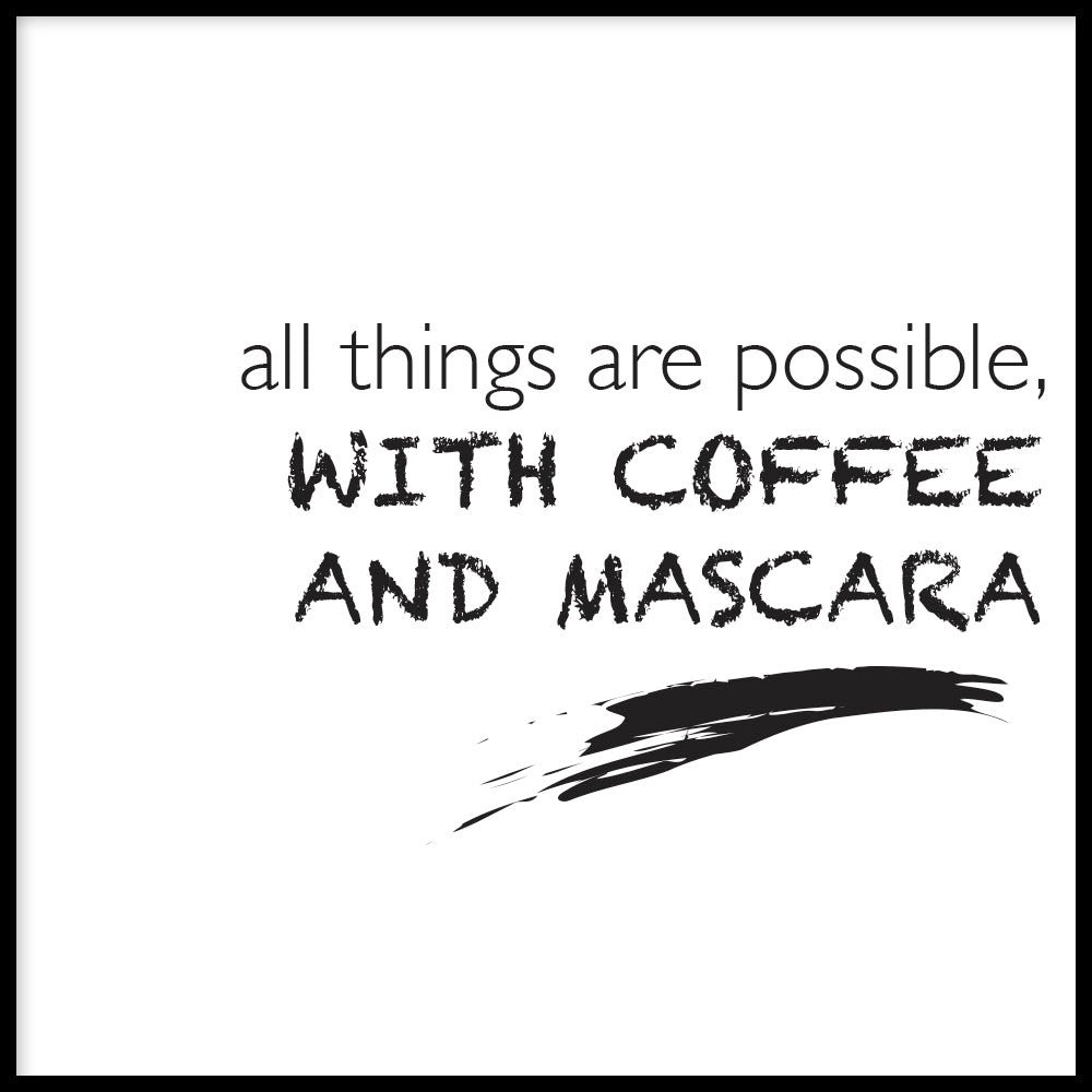 “Everything is possible with coffee and mascara.” Poster featuring insightful quotes.