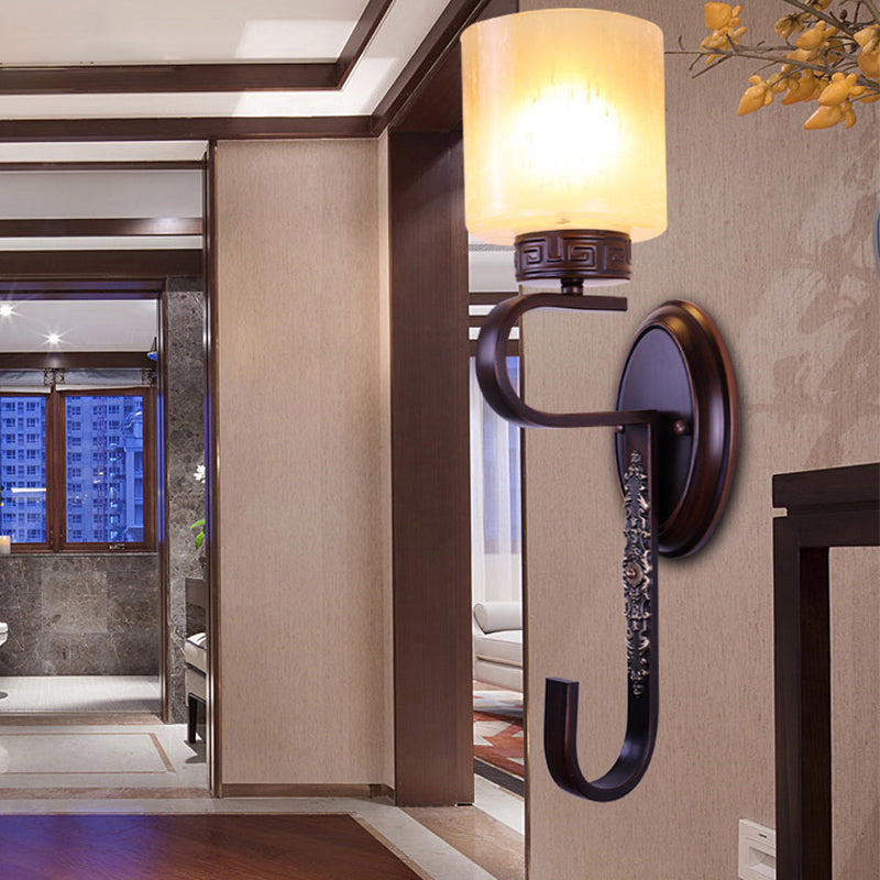 Rynx | Amber Glass Column Wall Lamp Retro 1 Main Living Room Wall Lighting Fixture in Black