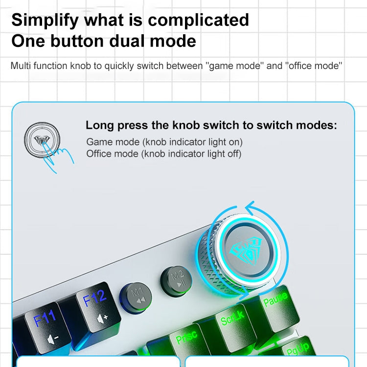 Rynx | AULA F3001 Backlit 87 Keys Wired/Wireless/Bluetooth Three Model Mechanical Gaming Keyboard (Silver White Tea Shaft)