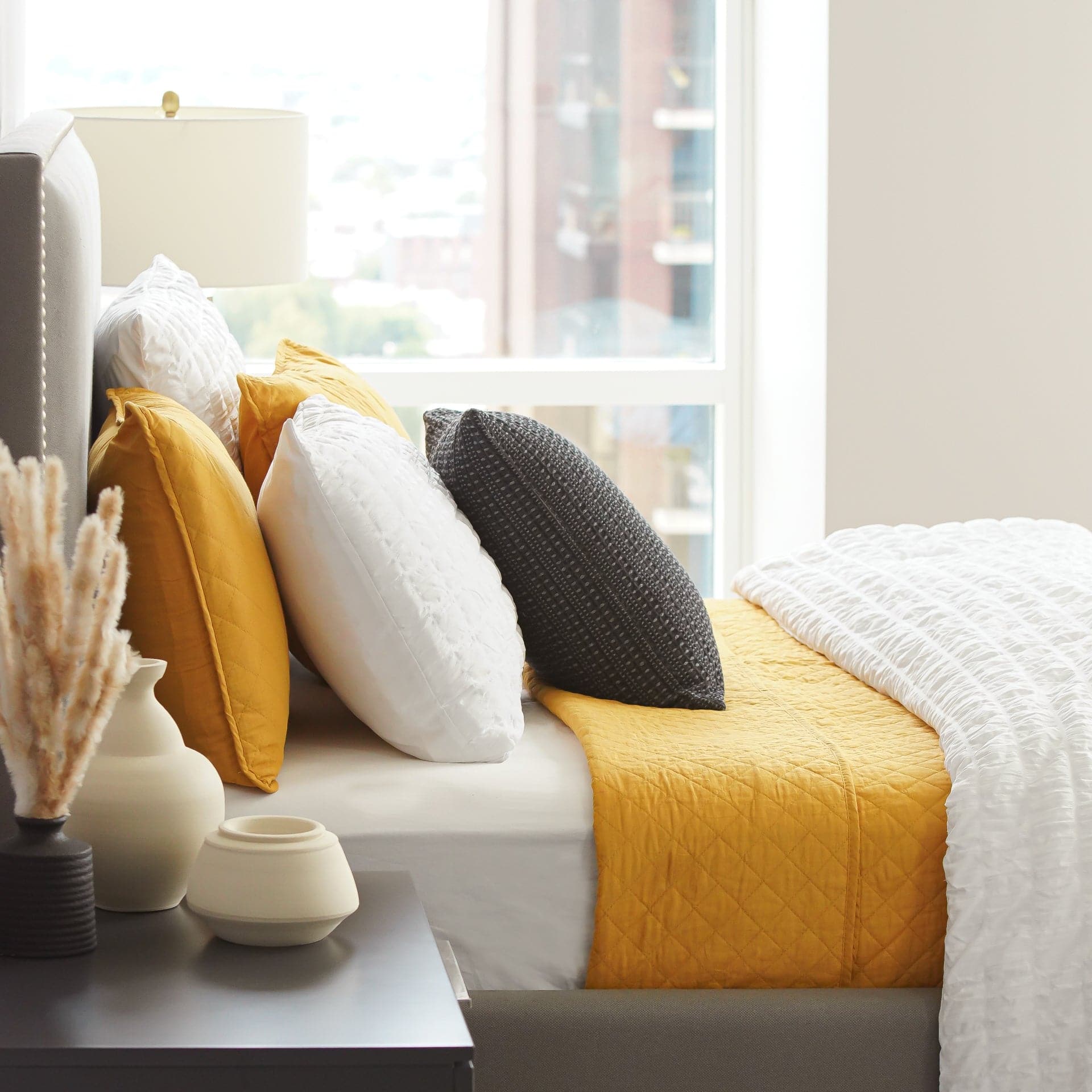 For enthusiasts of minimalist, contemporary, or farmhouse aesthetics, the Ava Diamond Oversized Cotton Quilt Set complements any of these themes beautifully. It serves as a delightful enhancement to a master bedroom or a guest room.