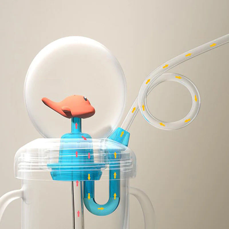 Adorable Splash Design - This baby cup utilizes turbo-charged suction and features a valve that uses air pressure to draw in and expel water, enabling little ones to discover the joy of drinking water through play.