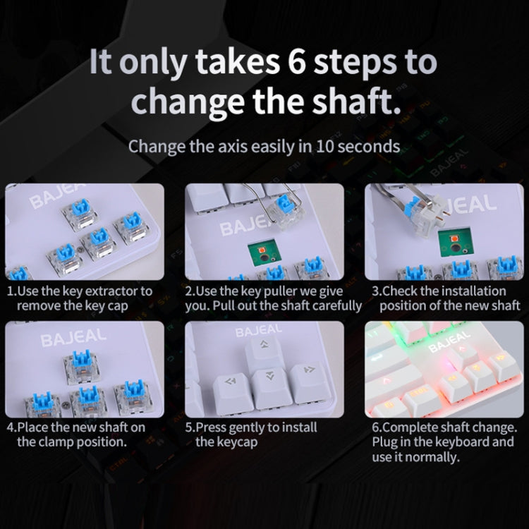 Rynx | BAJEAL K100 87 Keys Green Shaft Wired Mechanical Keyboard, Cable length: 1.6m (Blue White)