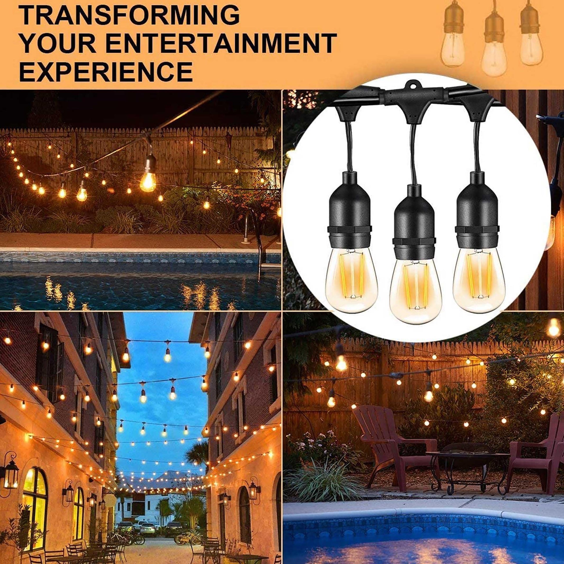 Rynx | Banord 48Ft Waterproof Outdoor Light Sources with Dimmable LED Bulbs - Warm White Patio Lights