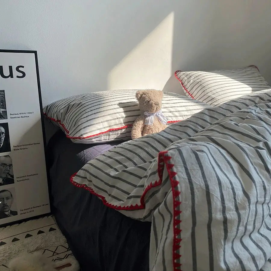 Rynx Duvet Cover Set Quilt Collection Ins Nordic Minimalist Design Gray Striped Bedding Set featuring four pieces, Luxury Bedding Ensemble with Bed Sheets