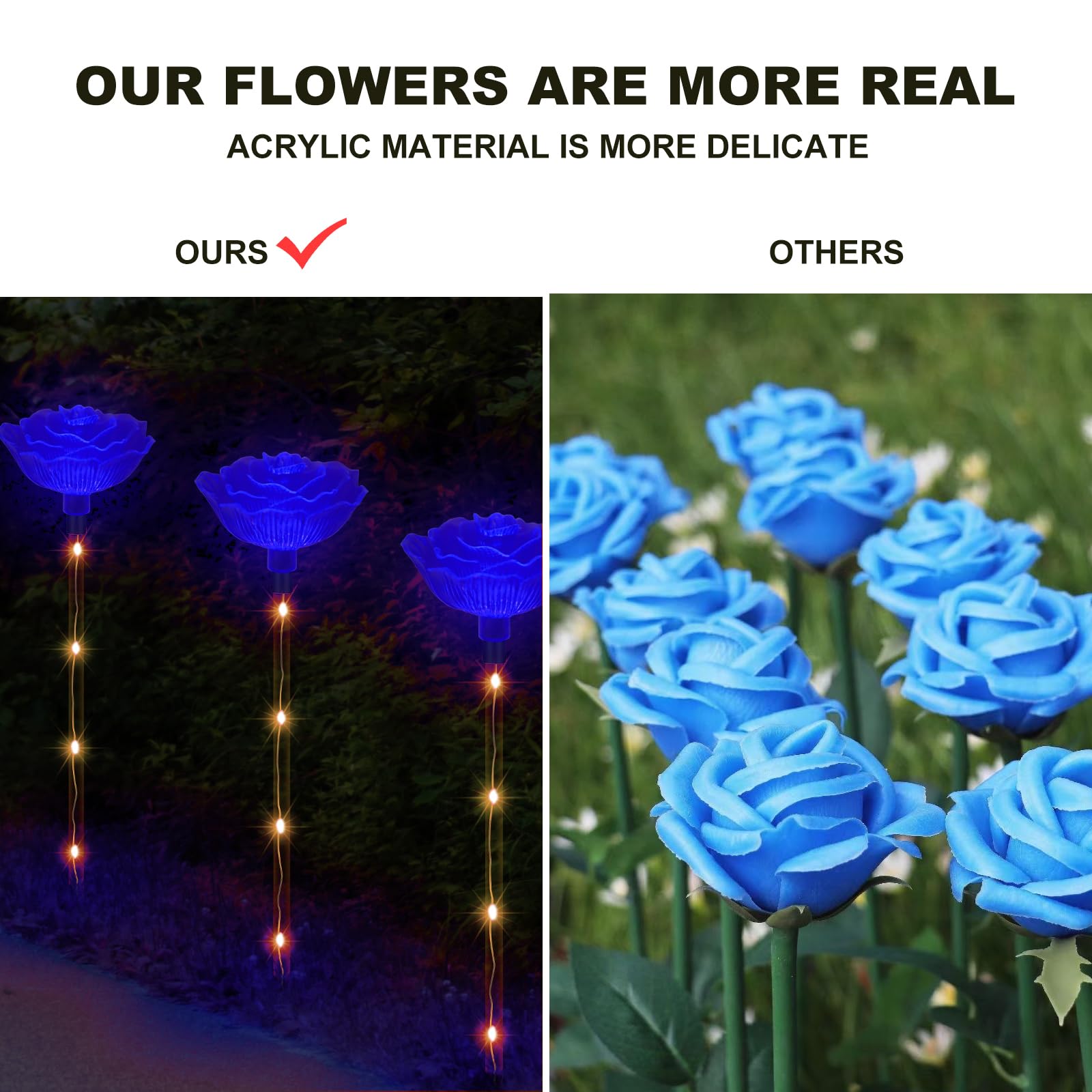 BeHiller Bigger Rose Solar Lamps Outdoor for Gifts Decorations, Latest Version Set with 6 Blue Rose Solar Flower Lamps Outdoor Path Light Decor Solar Rose Light for Wedding Graveyard Garden Decor