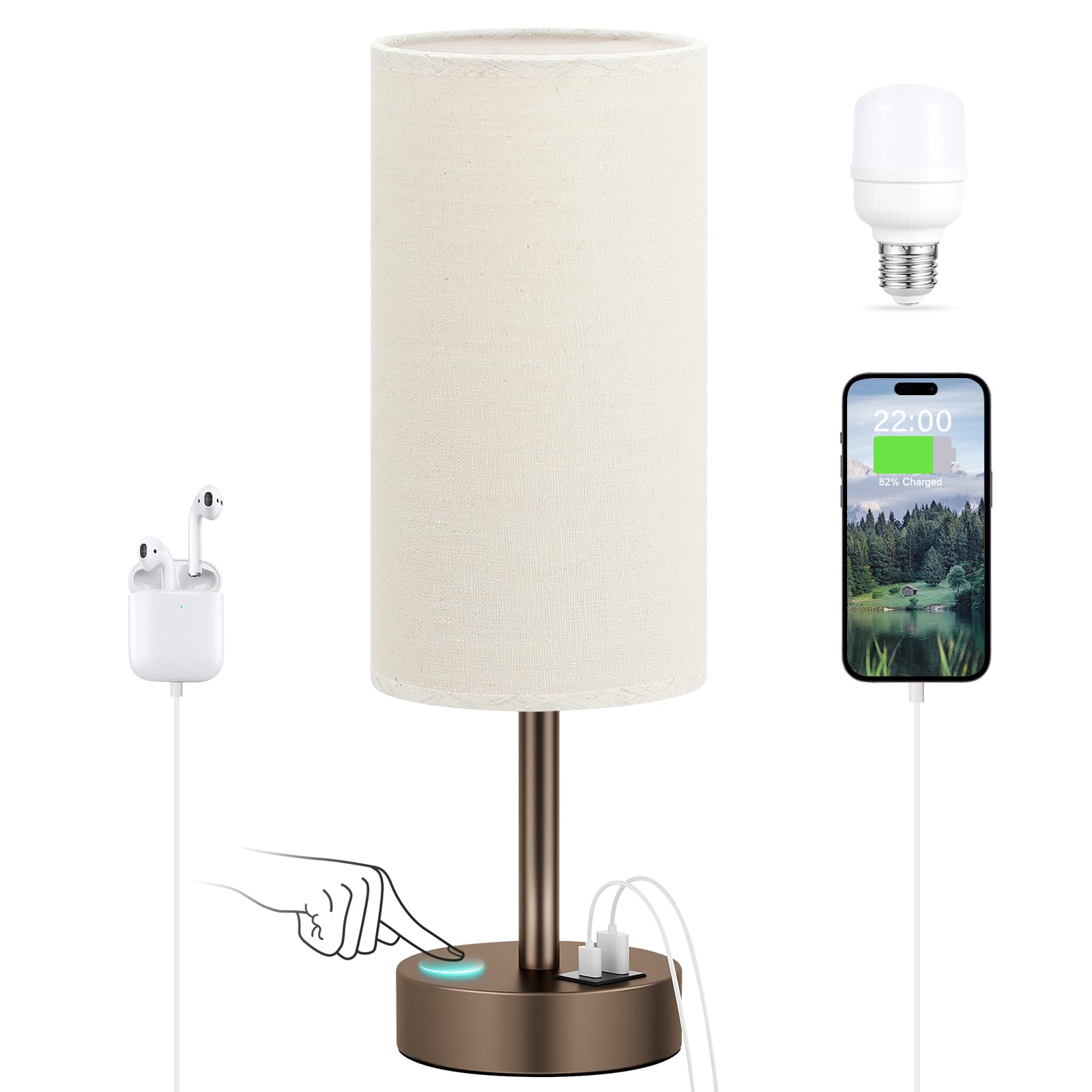 Rynx | Gugsey Bedside Lamp with USB Port - Touch Lamp for Bedroom, 3-way Dimmable Small Nightstand Lamp for Living Room, Bed