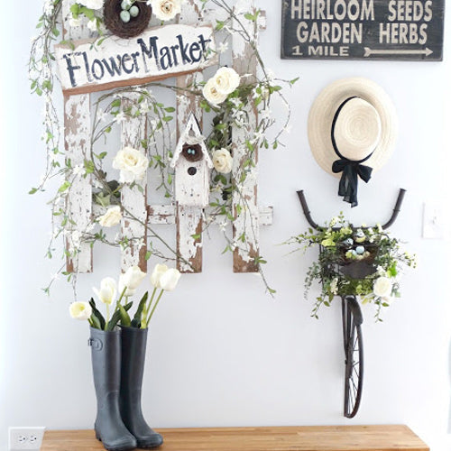 This bicycle decoration is rich in texture and exudes vintage farmhouse allure. It will look fantastic in your foyer, kitchen, dining area, utility room, or as an adorable focal point in a child's room! Be sure to fill the basket planter with your favorite blooms or any touch of farmhouse coziness! You can even leave it empty to add extra dimension to your space.