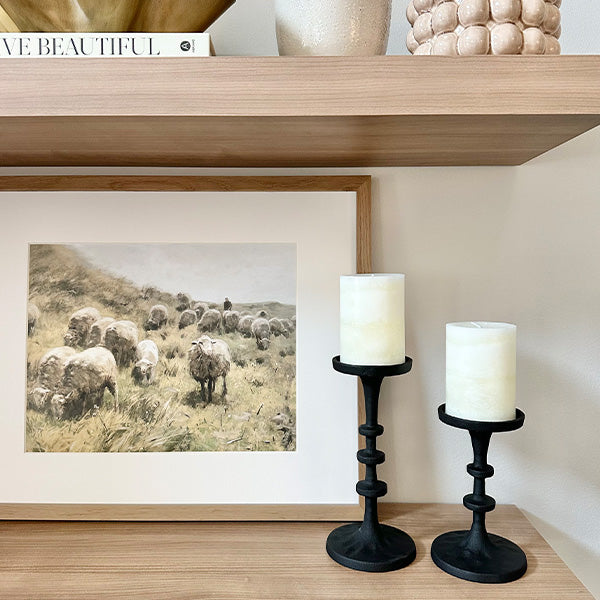 Rynx | Black Cast Iron Pillar Candle Holders, Set of 2
