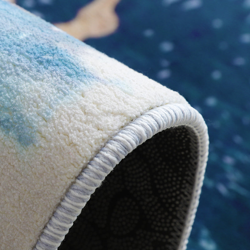 Rynx | Blue Parlor Rug Modernism Striped Pattern Rug Polyester Machine Washable Non-Slip Backing Carpet