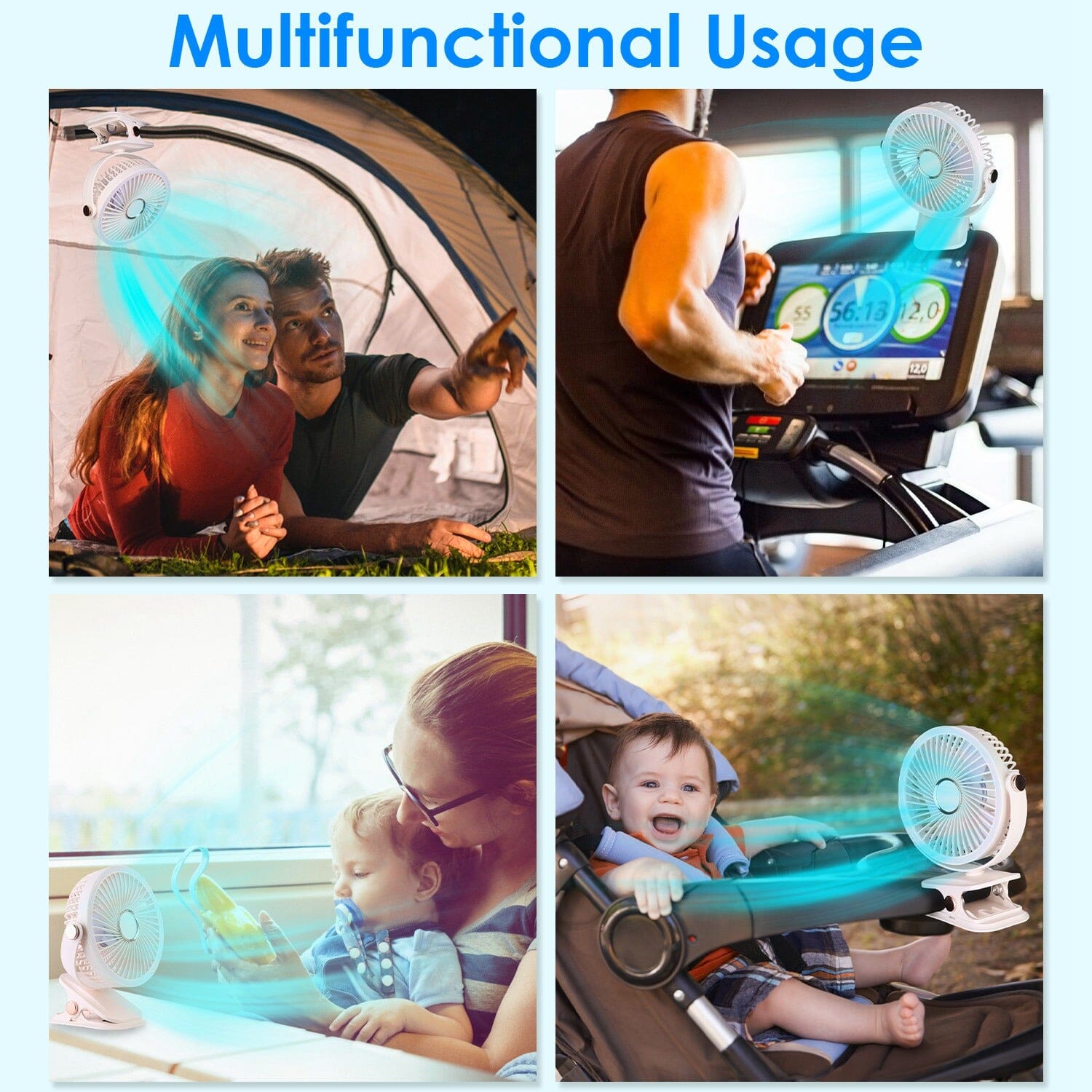 - Rechargeable & Long-lasting Battery: This clip fan is powered by a built-in rechargeable battery, capable of providing continuous operation for up to 280 minutes at the first speed with lights off. The included Type-C charging cable facilitates easy charging through a power bank, laptop, car charger, and more.