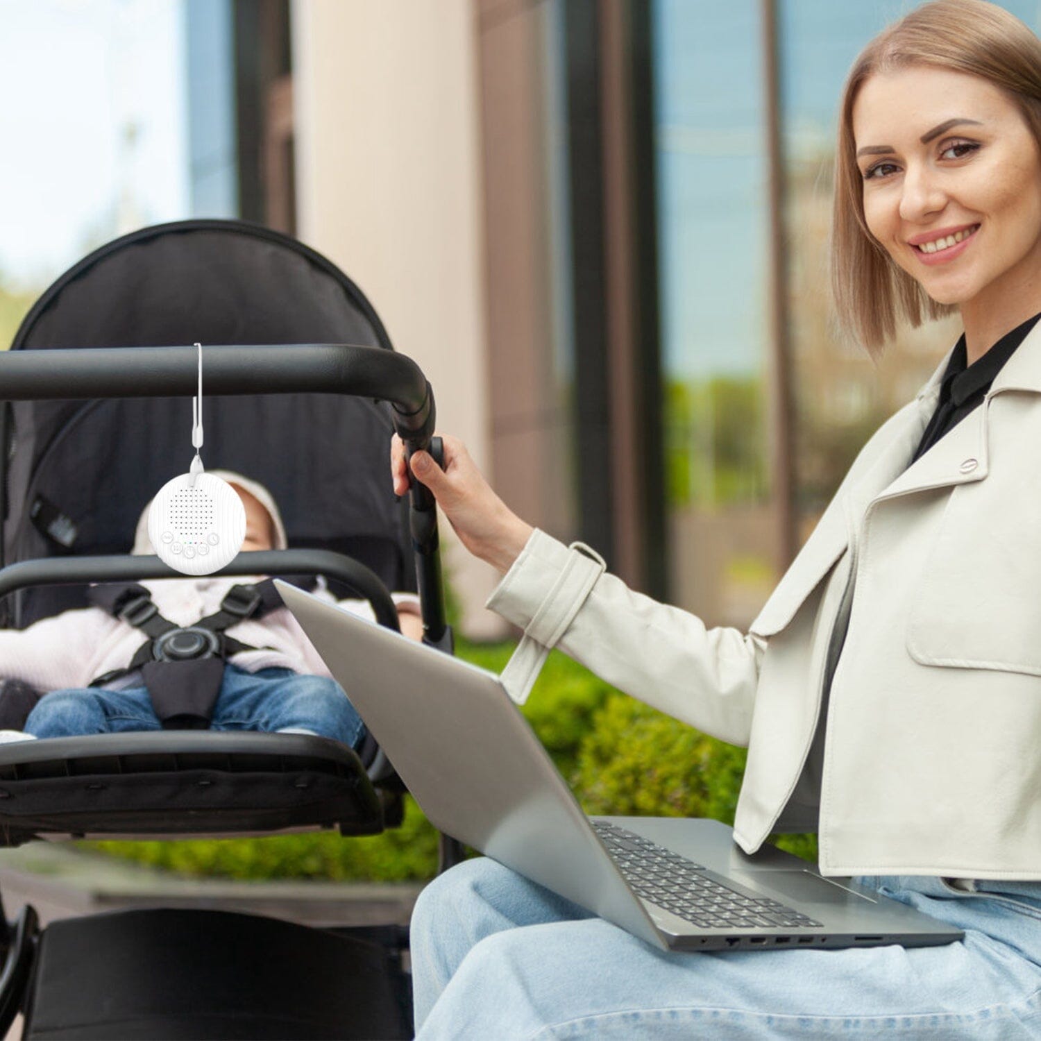 - Compact & Portable White Noise Machine: Designed with a tangle-free design and silicone strap, our compact white noise machine is completely safe for your baby and can be easily attached to cribs, strollers, diaper bags, car seats, and more, creating calming white noise to improve both baby’s sleep quality and adult relaxation. It's the perfect companion for work, home, travel, or wherever you go.